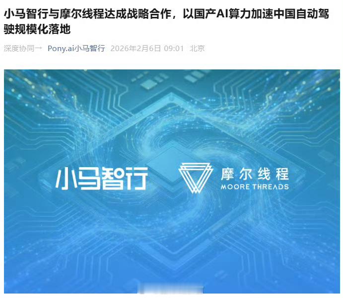 双方将基于摩尔线程 MTT S5000 智算卡及夸娥智算集群,共同推进 L4 级自动驾驶世界模型与车端模型的训练与优化。