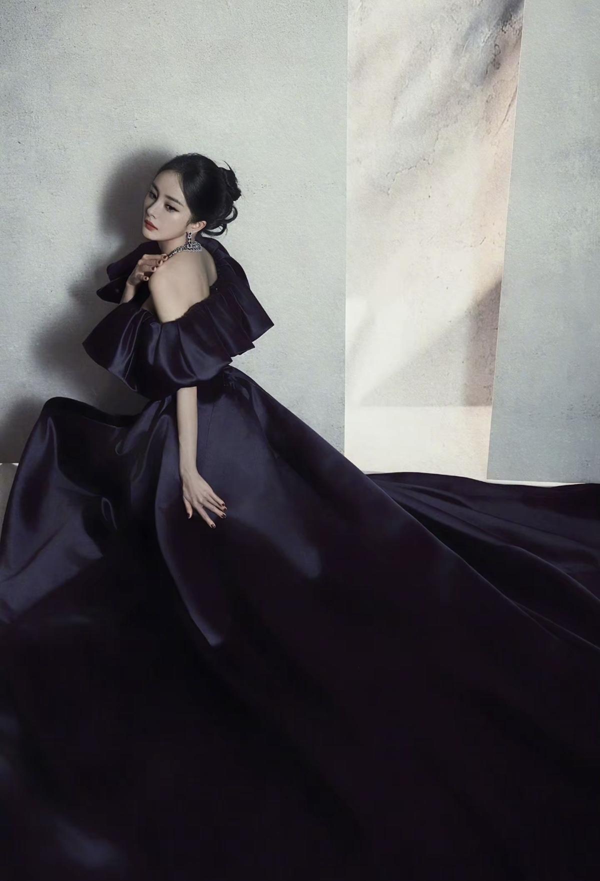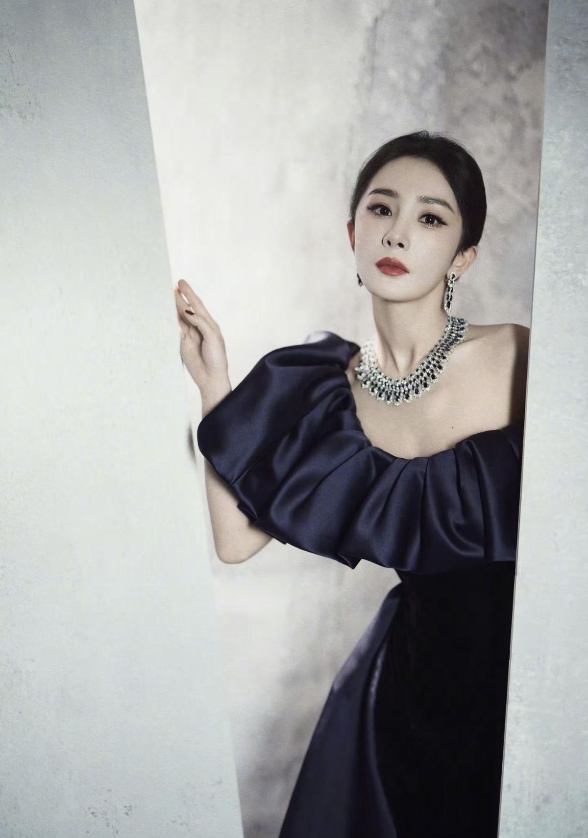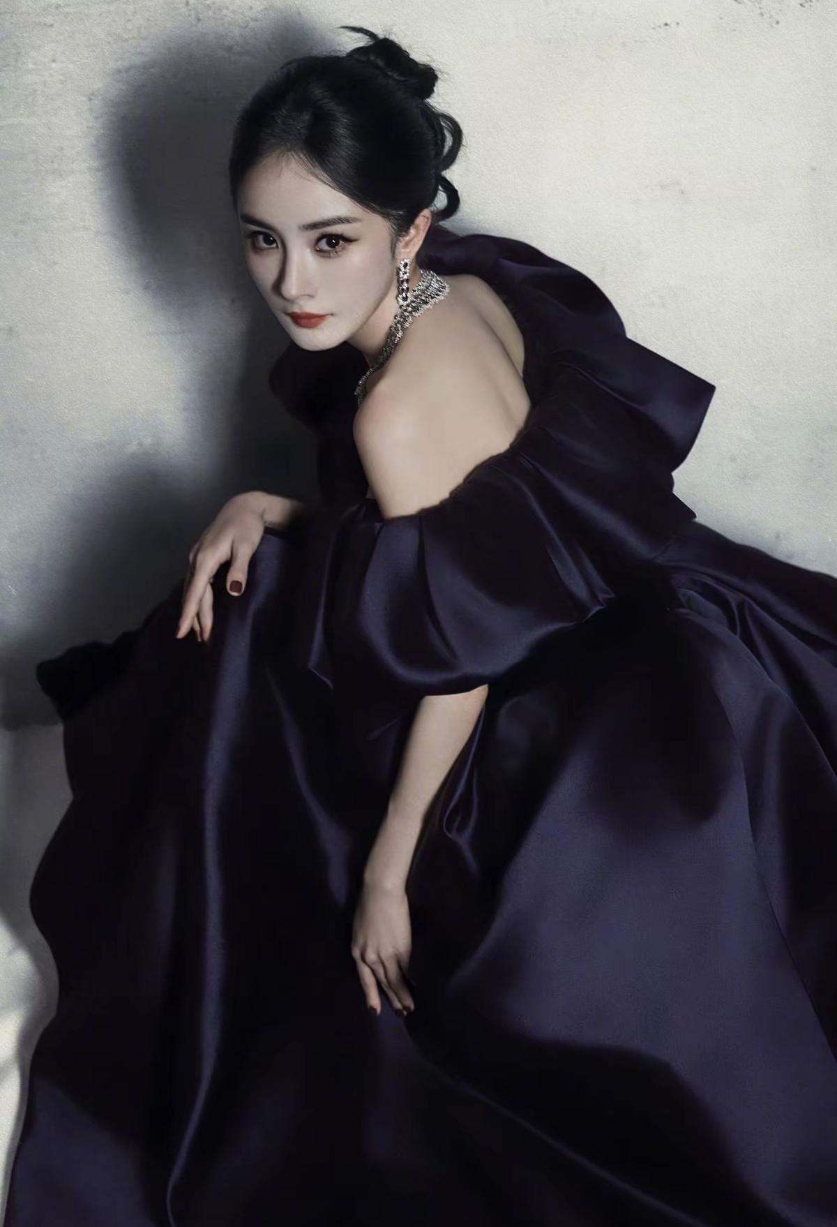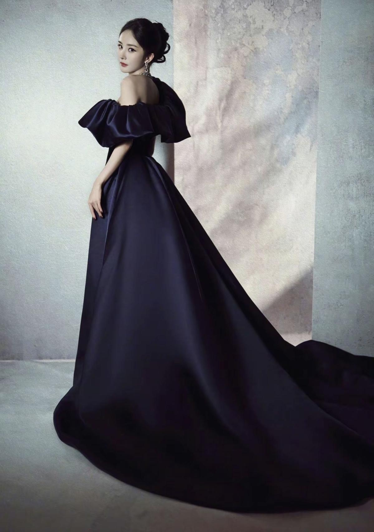杨幂身着藏青色丝绒缎面拼接礼服亮相 大廓形露肩设计搭配奢华钻饰,尽显优雅大气的女王风范[比心][加一][玫瑰]娱乐明星