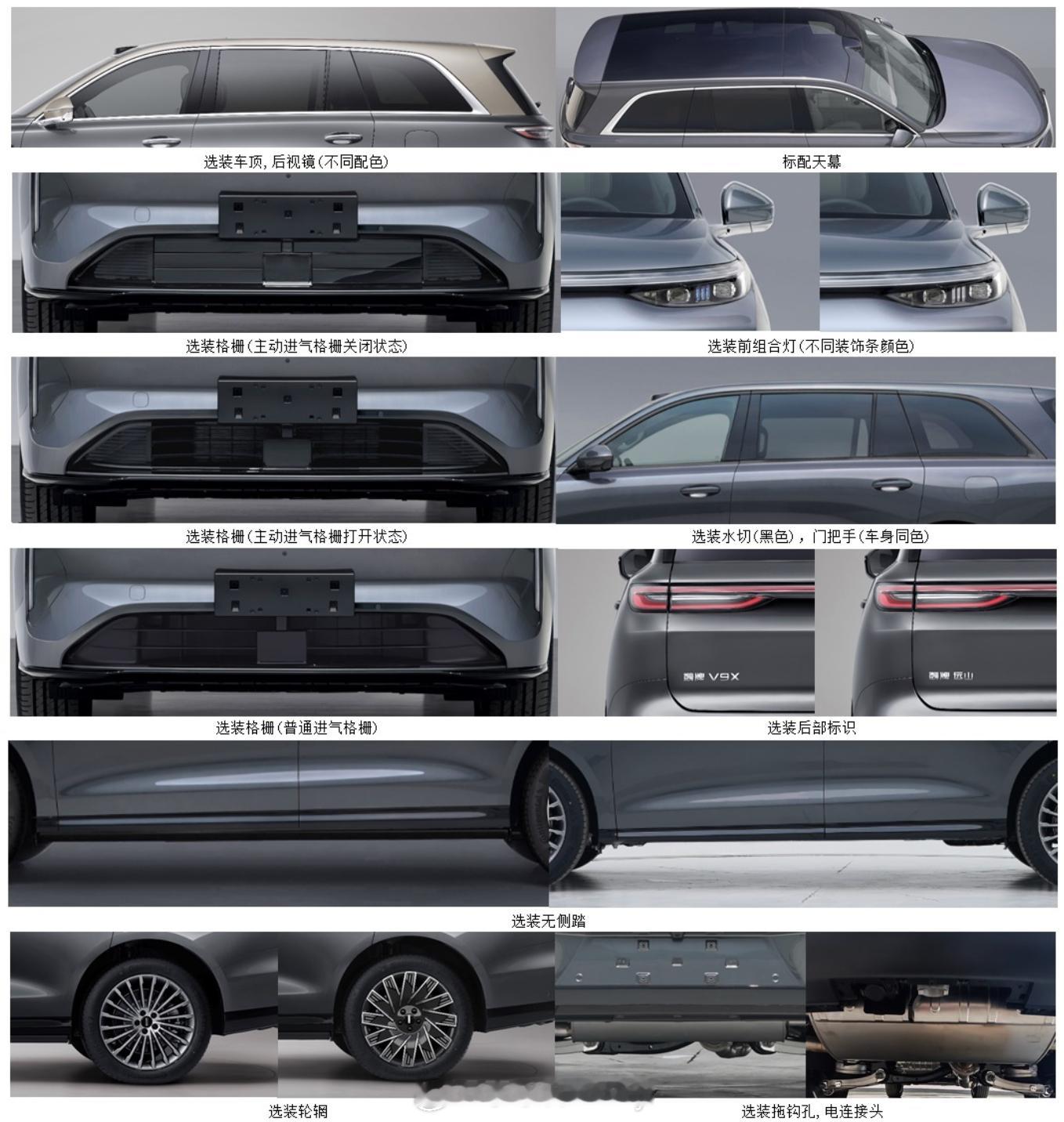 魏牌的三排六座保定旗杆子,你们觉得V9X如何?媒体老师们已经看过实车了估计要有视频上线了ta的成功还是非常大程度的来看长城家族最新的技术是否有强竞争力长宽高5299/2025/1825mm轴距3150mm;E20NB 2.0T发动机-175kW;从申报信息来看电池包来自53.6度—纯电续航240km;77.7度—纯电续航363km;至于中文名字各位猜猜吧!魏牌v9x新能源汽车