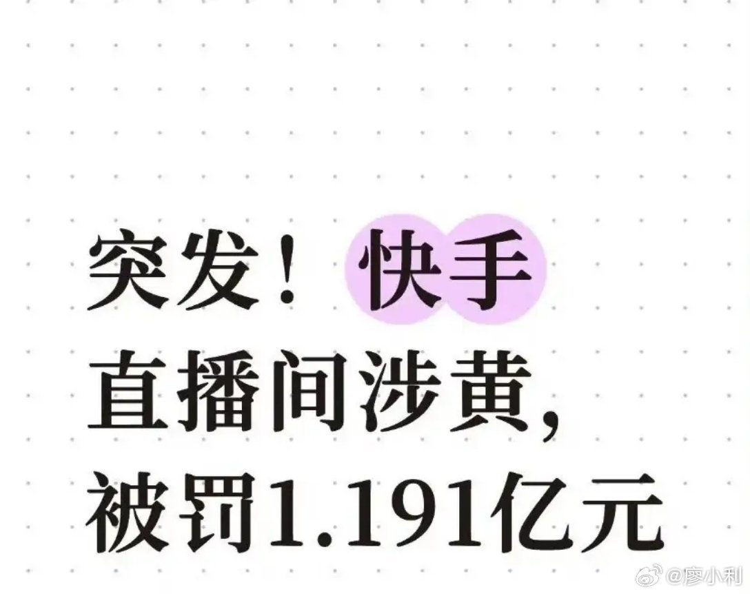 快手被罚1.191亿元人民币不仅仅是快手,还有很多平台,倡导自私享乐,扭曲婚恋观,要不编一些家长里短的视频,不是婆媳干架就是兄弟相残,引得一帮老太太天天抱着手机看,再卖保健品!网络是传播正能量的平台,不是某些牛鬼蛇神的舞台,玩剧本,玩低俗,低俗博眼球,色情察边等等,希望国家严历监管各大平台,不允许低俗视频出现在网民的视野中,还国人们一片晴朗的天空,让人民生活在祥和,文明的世界里,支持正能量!热点观点