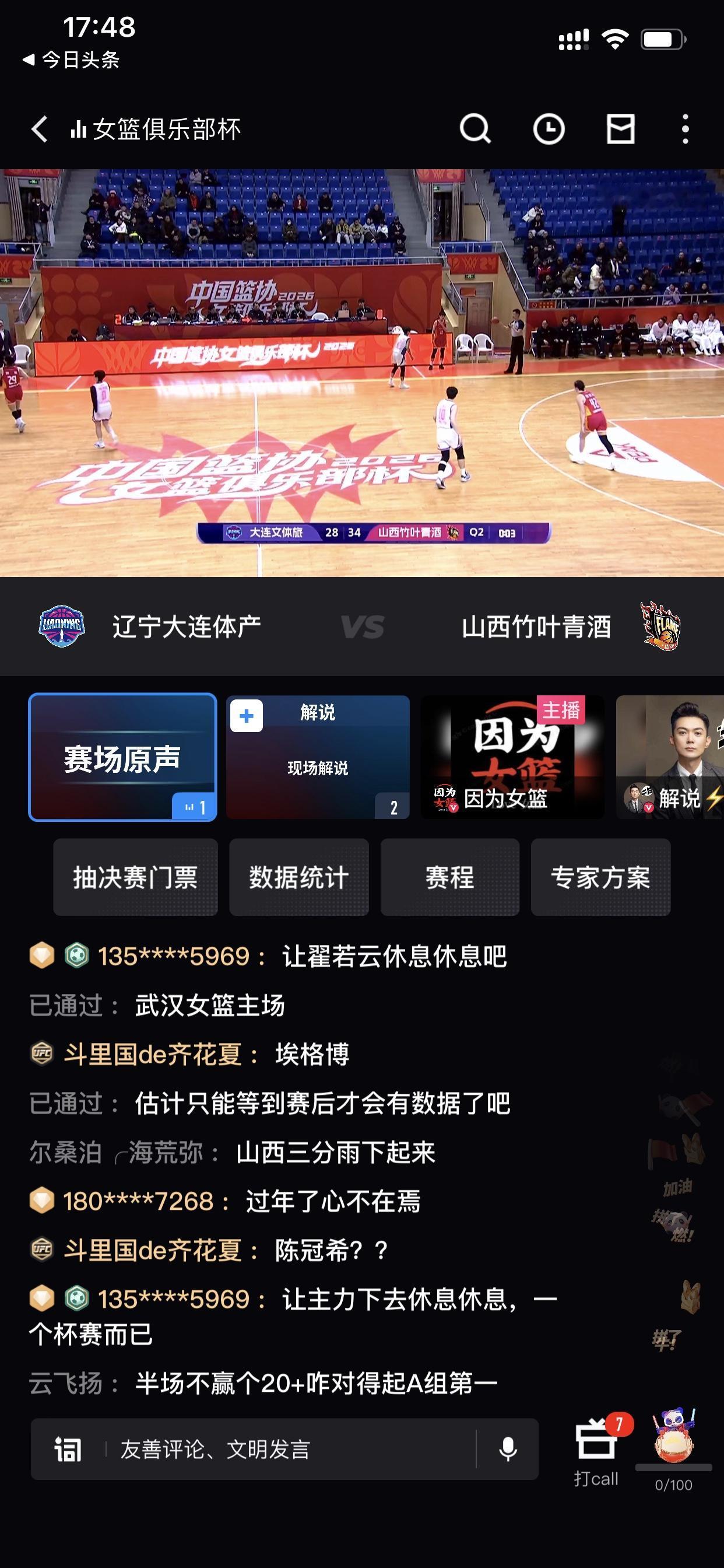 山西女篮没有打出A组第一的统治力 但最终还是以69:57击败大连女篮 对比下午14:30开始的那一场,这两支队伍基本都拿出了自己能派出的阵容 但是从开局到第四节前半段,山西女篮作为WCBA本赛季常规赛的冠军,面对B组第三,却没能打出自身的统治力 像此前发挥很好的惠特尔、埃格博,今晚也没有打出自身应有的水平,所以山西女篮一些球迷在弹幕区进行各种抱怨 不过,这个没有状态也正常,你不可能奢求球员场场状态爆棚 至少,最终赢了!