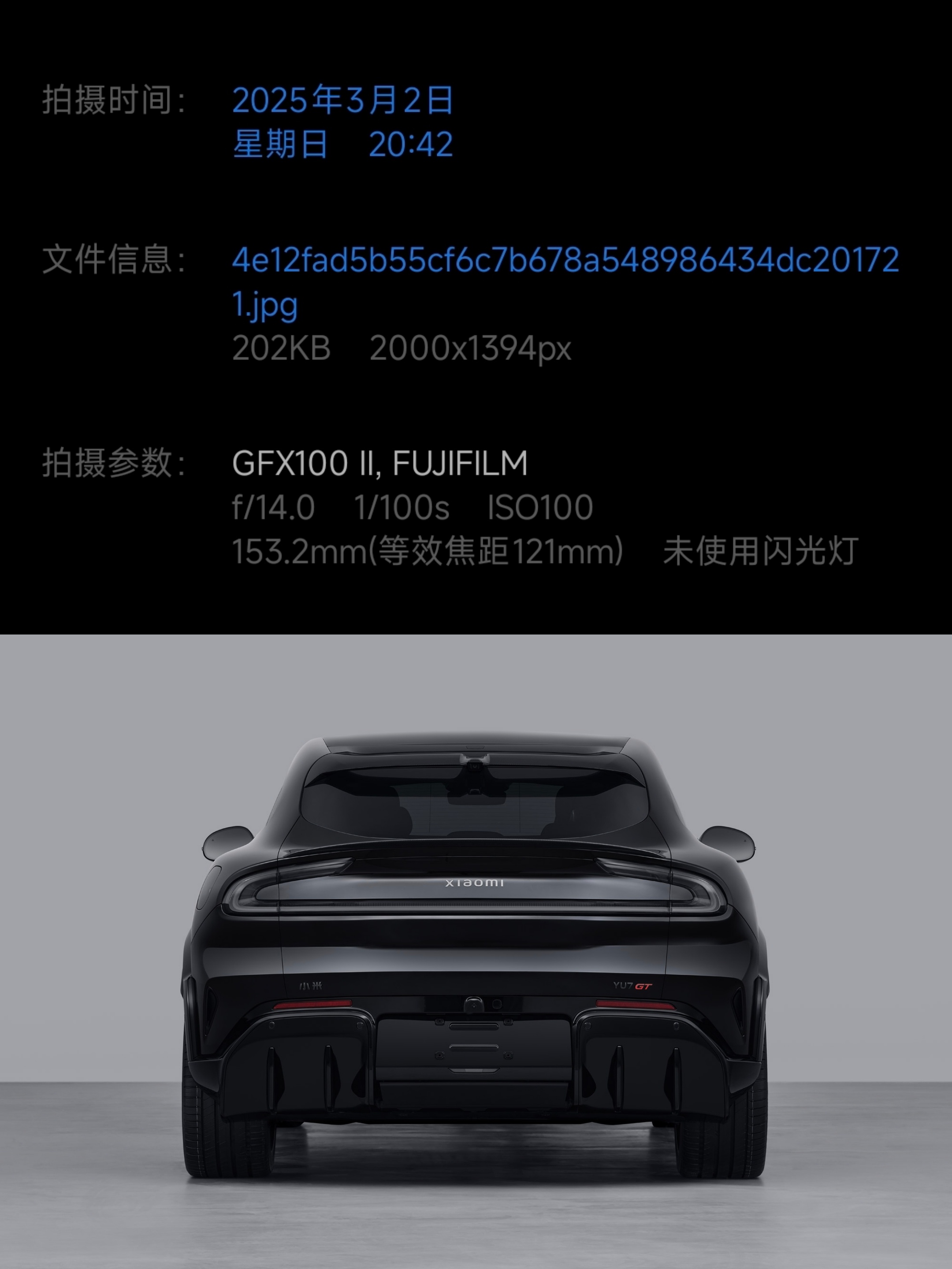 小米YU7 GT工信部证件照的小细节背面和正面照均由富士GFX100 II拍摄,