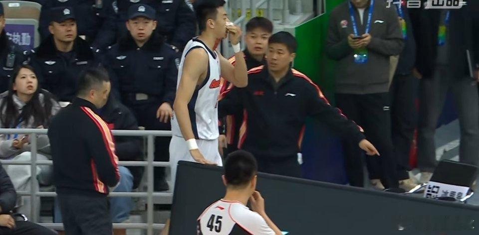 我去王少杰面部被打到了,鼻子流了好多血,有些吓人,暂时被换下场休息,希望没有大碍