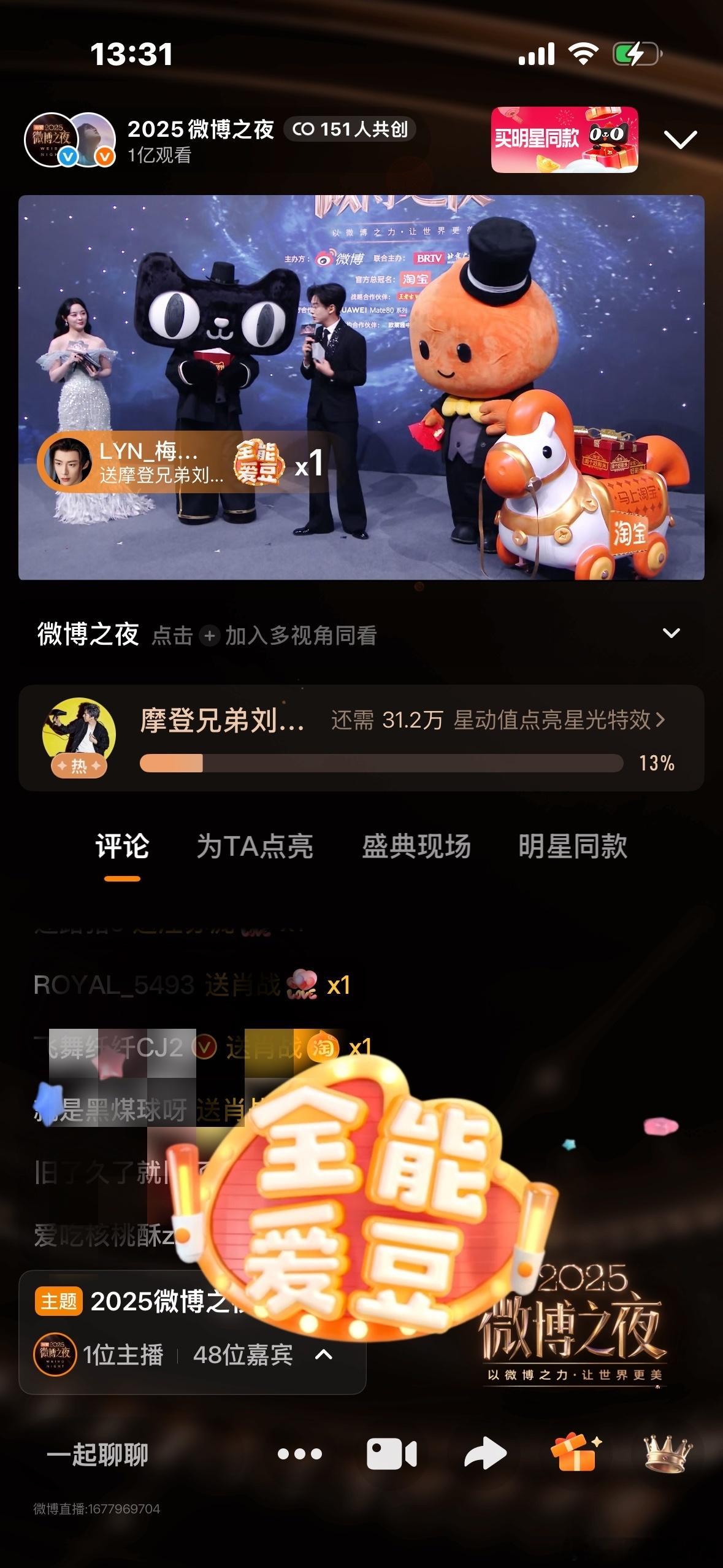 为宁点亮!!!看着迅速滚动的屏幕,激动💗宁宁虽然宁不走红毯,但是丝毫不影响家人们对宁的支持一浪高过一浪