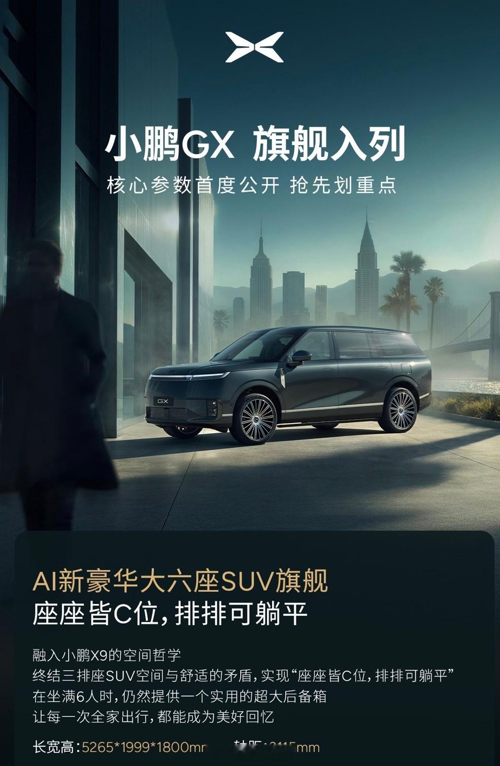 小鹏GX这进度可以啊,何小鹏刚晒了新车图,并透露四五月上市,L4自动驾驶测试也在跑了。作为小鹏首款AI豪华大六座SUV,尺寸够大,轴距3115mm,六个人坐满都舒服,后备箱还能装不少东西。再加上线控转向和后轮主动转向,大车开着不笨重,很适合家用,坐等上市看看实车。小鹏GX预计四五月上市小鹏GX已开始L4测试