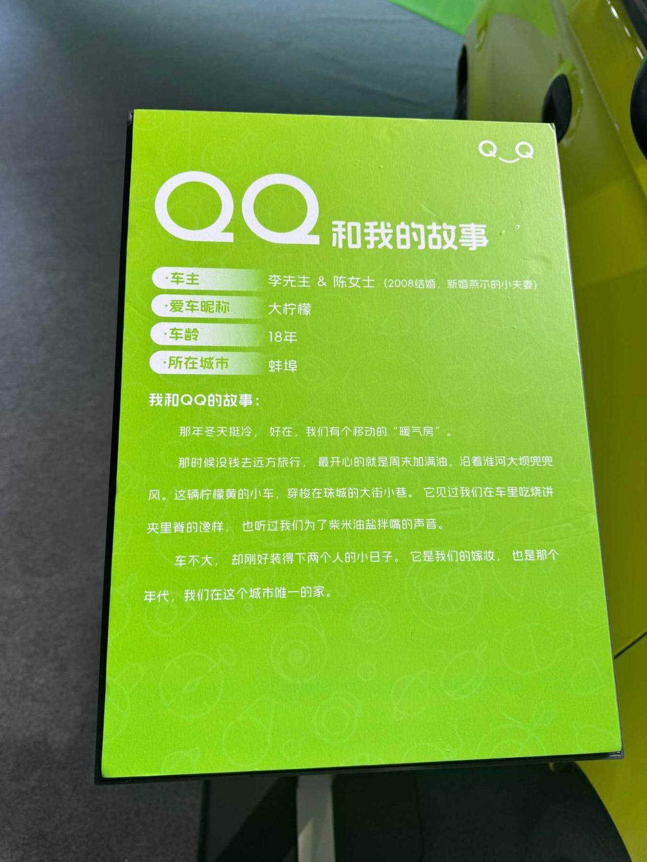 到奇瑞QQ之夜现场了,一进场就看见了熟悉的老身影---20年前的初代QQ,旁边还有老车主和它的故事简介。 越往里走,QQ越新越个性,每一台背后都是当年独属于它的辉煌,有当年轰动全网的QQ大睫毛,还有勇闯拉萨的自由QQ侠。 人潮的尽头,就是今天的主角QQ3了,新的一代纯电平台,也有了新的外观,更时尚,更有质感了,与其说这是一场发布会,咪娅感觉这更像QQ这20年的一次“车生小节会”,非常期待接下来的发布会了!【来自懂车帝车友圈】
