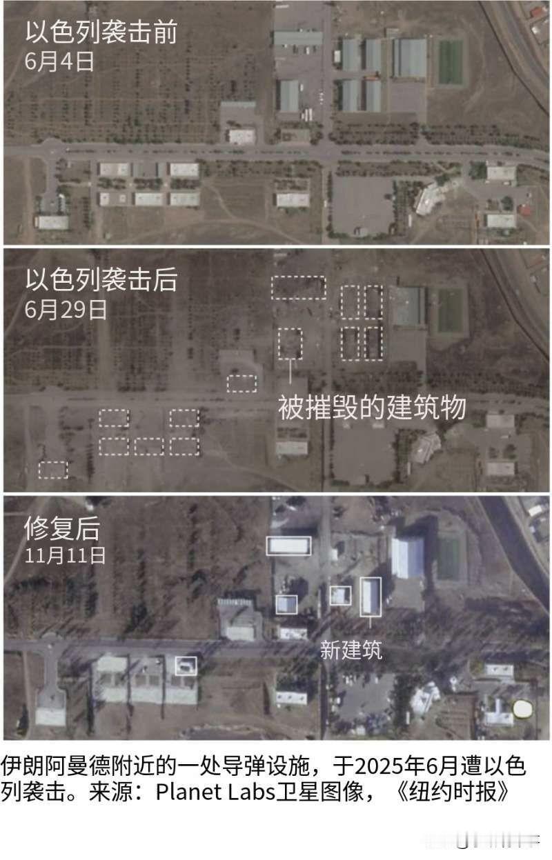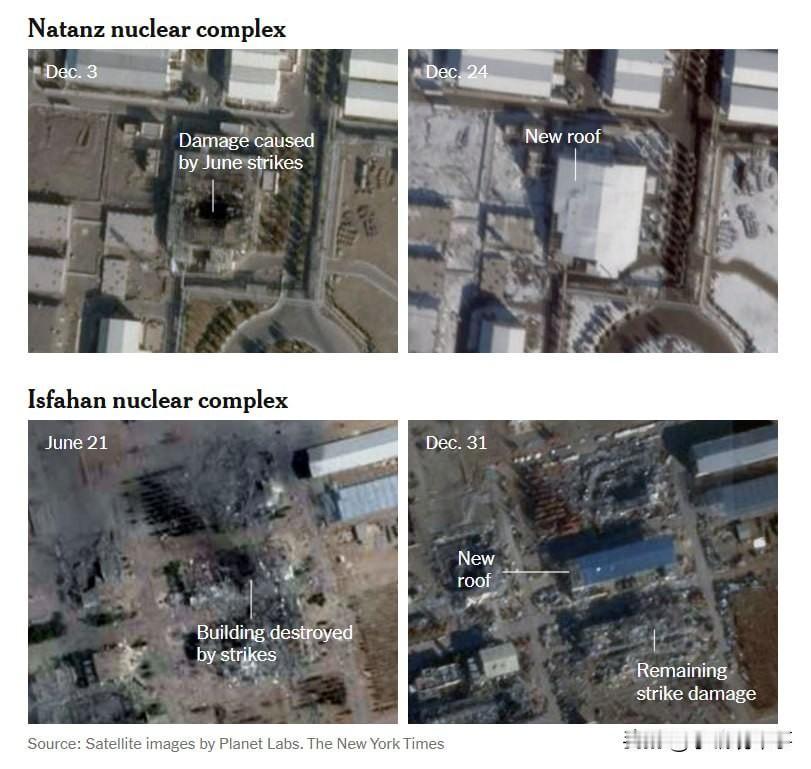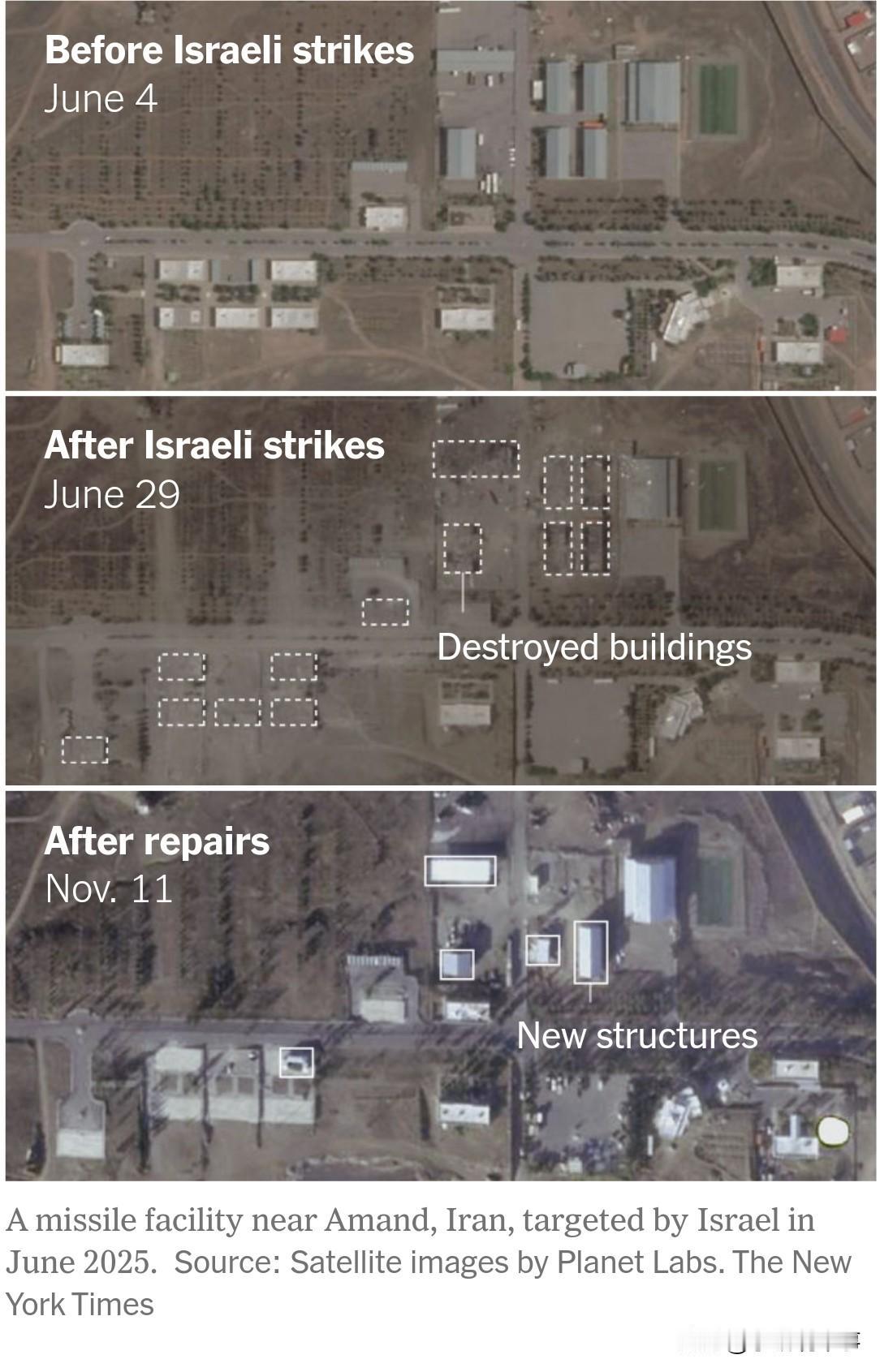 美国《纽约时报》提供以下卫星图并分析称,伊朗已迅速修复了2025年6月遭以色列袭击而损毁的弹道导弹设施,但对主要核设施仅进行了最低限度的修缮。 这种差异表明,伊朗正把短期内生产导弹作为威慑手段的优先事项。 专家指出,沙鲁德导弹设施等设施重建速度相对较快,而纳坦兹和伊斯法罕等主要核设施基本处于非运作状态,仅能看到有限的结构性修缮,如新建了屋顶。