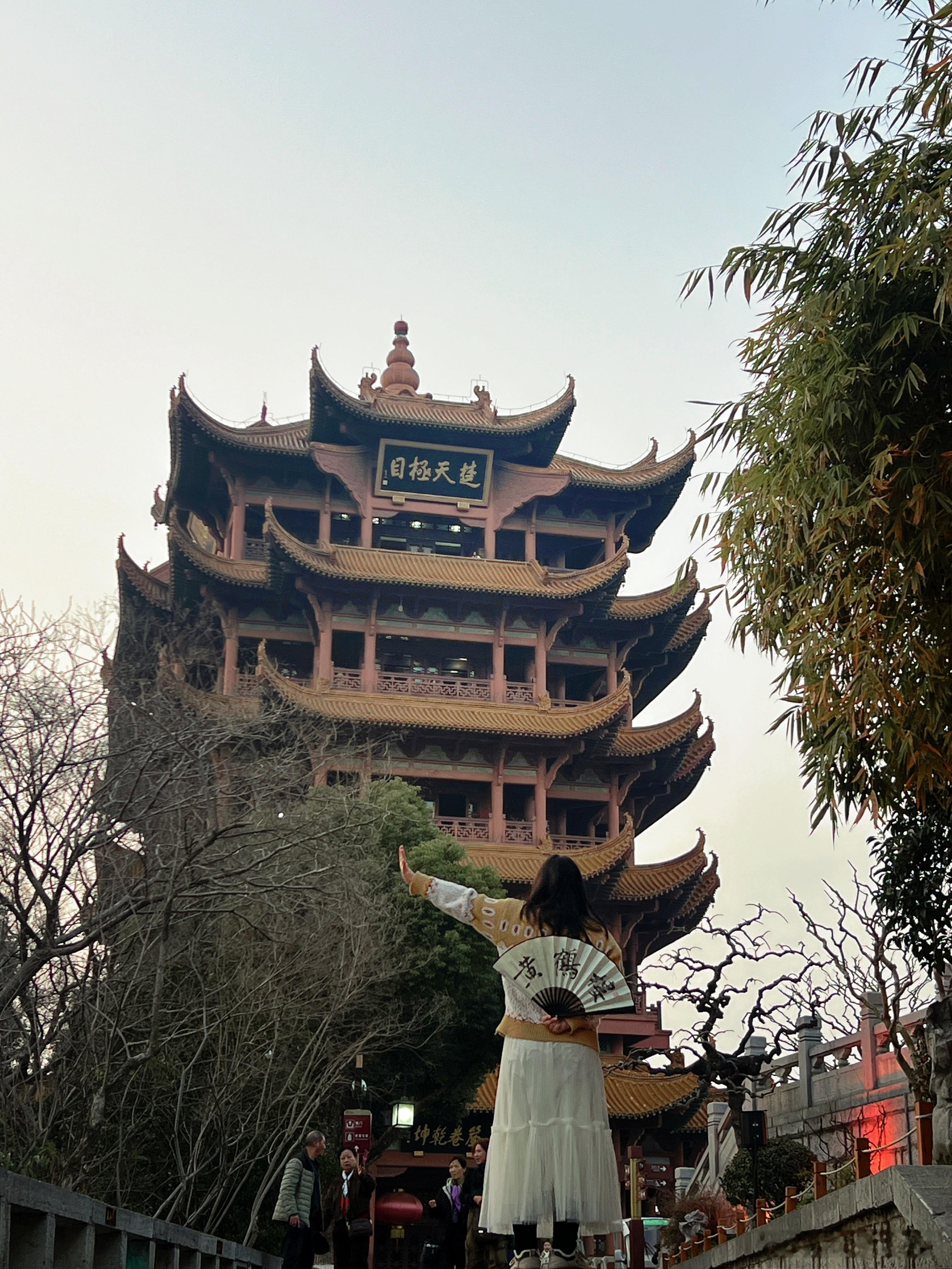 武汉旅游攻略出片率 100%‼️黄鹤楼神仙机位➕路线指引来武汉必冲黄鹤楼🏯这条黄鹤楼拍照封神路线一定要收好!全程不绕路,每个点位都出片,手残党也能刷爆朋友圈!🚶【独家闭环路线】司门口黄鹤楼站 C口→红墙→公园西门入园→诗碑廊→白云阁→黄鹤楼主楼→公园东门出(近地铁站 A 口)✅必打卡机位🔸司门口黄鹤楼站 C口:出站右转红墙,虽然人超多,但仰拍飞檐➕红墙,出片率拉满!(现在红墙内的停车场在重建,还可以拍一些搞怪照片)🔸诗碑廊:崔颢题诗墙就在公园西门入园处,拍黄鹤楼侧影➕诗碑,氛围感拉满🔸白云阁:避开主楼人群,人坐在古钟前的镜子上拍倒影或者拍黄鹤楼全景,背景干净不杂乱🔸黄鹤楼主楼5层:每层都有不同历史主题,拍景➕拍人文两不误!一定要登顶,可以俯瞰长江大桥,全景视野绝了!💡实用小贴士🚇交通:地铁5号线司门口黄鹤楼站直达,路线闭环,进出都方便👗穿搭:新中式/浅色系,配折扇更出片⏰时间:白天 8:30-18:00(建议9点前入园,避开旅行团高峰),夜场19:30-22:00🎫门票:70r(学生半价),也可使用年卡;夜场需单独买票✨PS:1⃣现在正是梅花得盛花期,园内梅花开得正好,亭台楼阁➕梅花,古风意境绝了,适合拍清冷感照片2⃣司门口黄鹤楼站A口离长江大桥不远,走几步就到,在长江大桥上拍黄鹤楼也很出片武汉旅游 黄鹤楼打卡机位黄鹤楼攻略 避开人流打卡