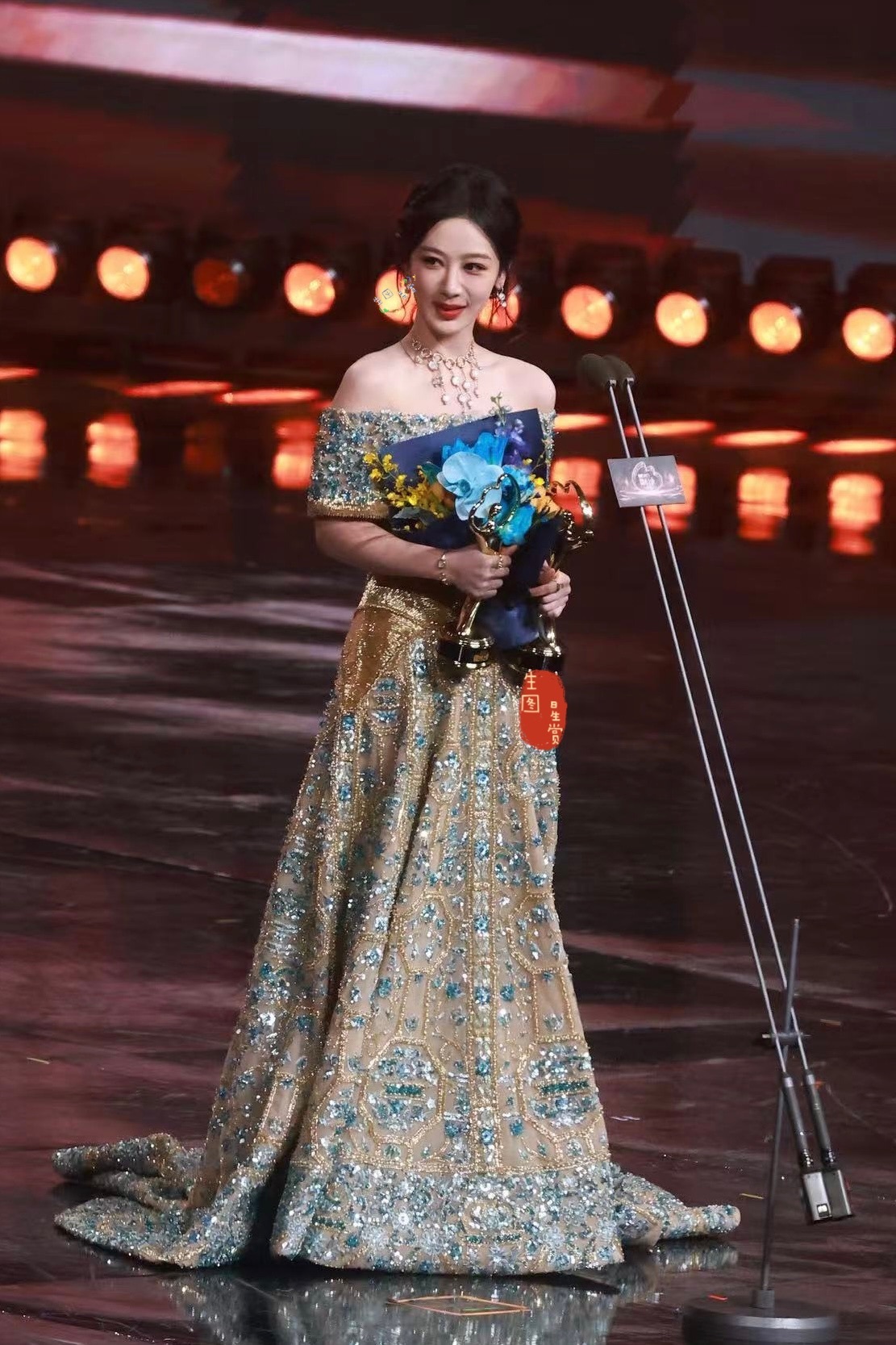 杨紫微博之夜颁奖礼出图金色紫妹,尽显大花气质✨杨紫生命树杨紫白菊