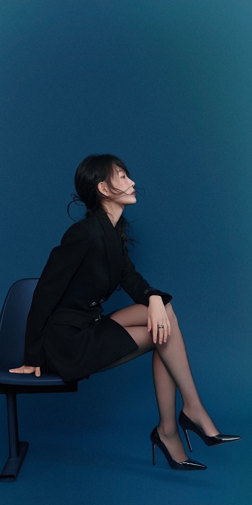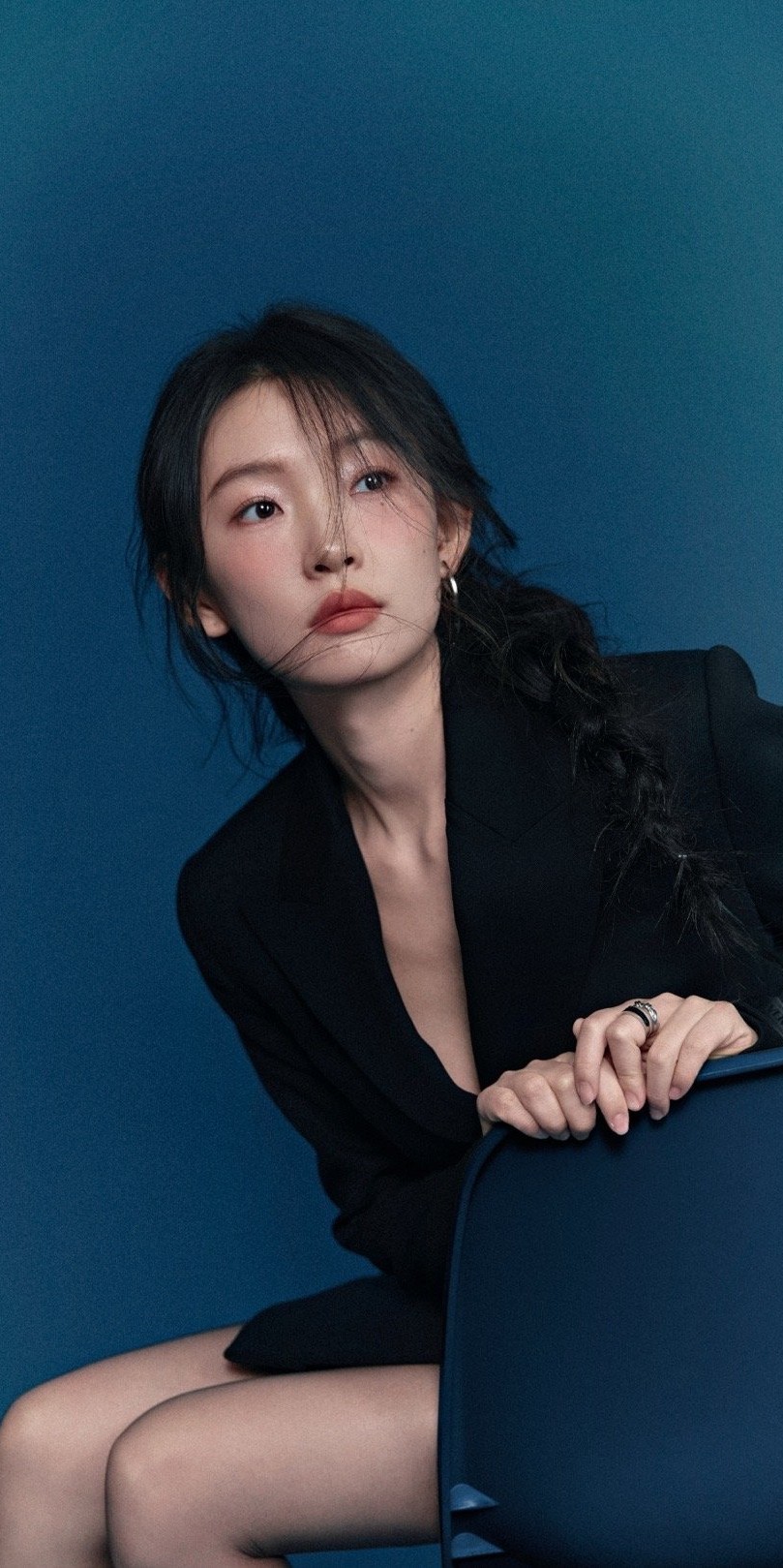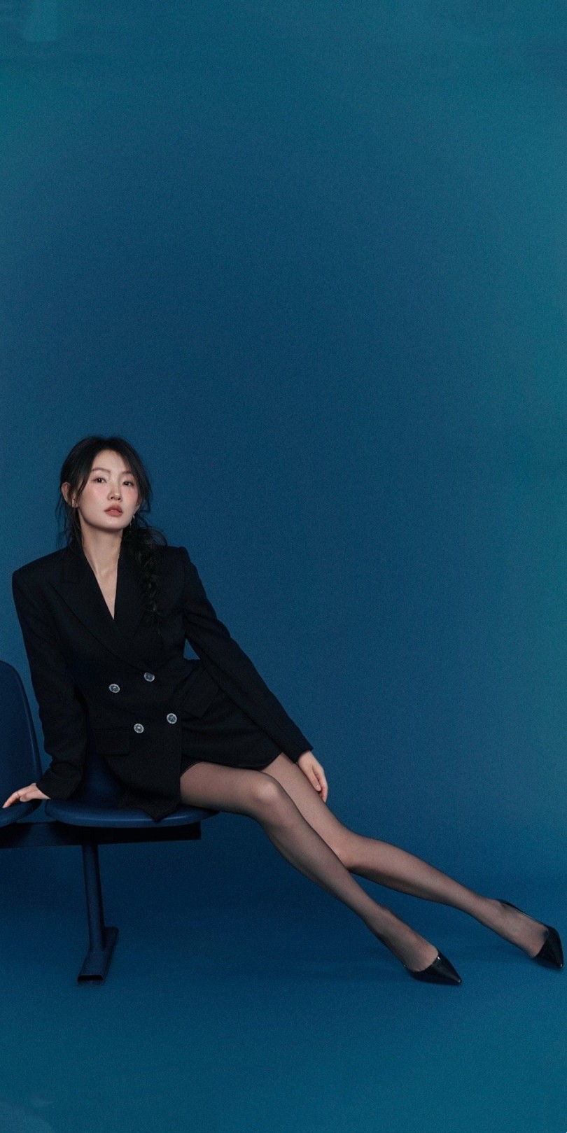 周依然,西装丝袜妆造大长腿。周依然