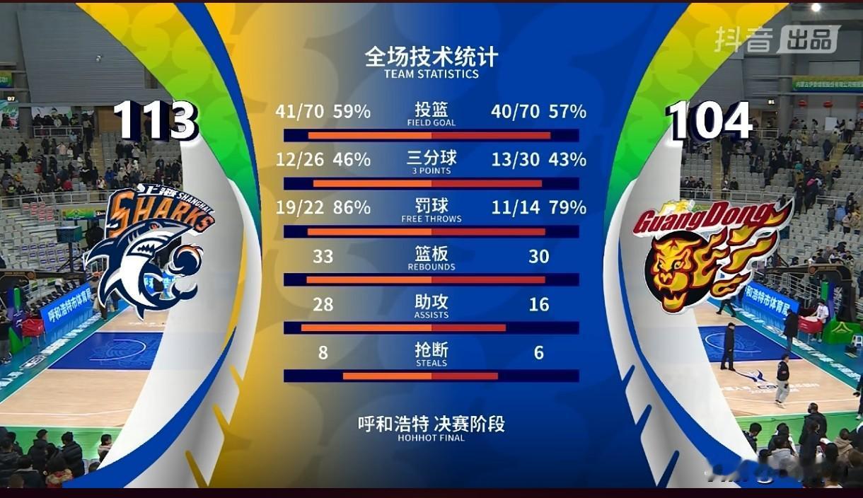 CBA俱乐部杯上海113-104力克广东实现赛季三杀 洛夫顿31+7+11率队晋级 四强鲁沪会师 2月6日CBA俱乐部杯1/4决赛,上海久事113-104击败广东东阳光,实现赛季对广东的三杀,携手山东晋级四强,两队将会师半决赛。此役双方均折损国家队主力,广东仅双外援出战且萨姆纳早早4犯、末节伤退,上海四外援轮番发力掌控比赛。广东开局打出13-2梦幻攻势,弗格替补登场单节轰13分,率上海打出7-0高潮首节26-23反超。半场两队胶着,上海以51-47微弱领先。第三节洛夫顿、王哲林联手拉开分差,怀特塞德内线暴扣稳住局势,上海带着11分优势进入末节。末节奎因狂砍三分率广东追分,洛夫顿带队轰9-0锁定胜局,最终上海守住优势拿下胜利。数据端洛夫顿31分7板11助成核心,弗格18分、白边14+12;广东奎因空砍37+14,萨姆纳26分难救主。