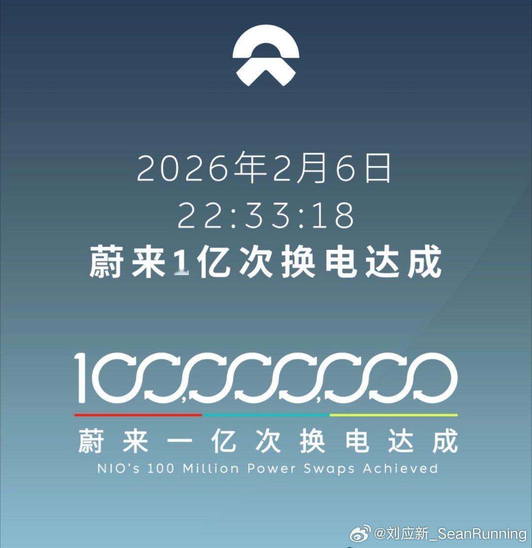 2月6日22:33:18,蔚来实现第1亿次换电,幸运车主来自浙江海宁的ET5T用户。李斌在上海直播见证这一里程碑,52.8亿kWh累计换电电量,为用户省下8341万小时充电时间,超263亿元燃油开支。每一次换电都是一次电池体检,累计减少碳排放4169.5吨,相当于16.7万棵树年吸收量,同时通过电网削峰填谷超7.4亿kWh,尽显能源科技的社会价值。