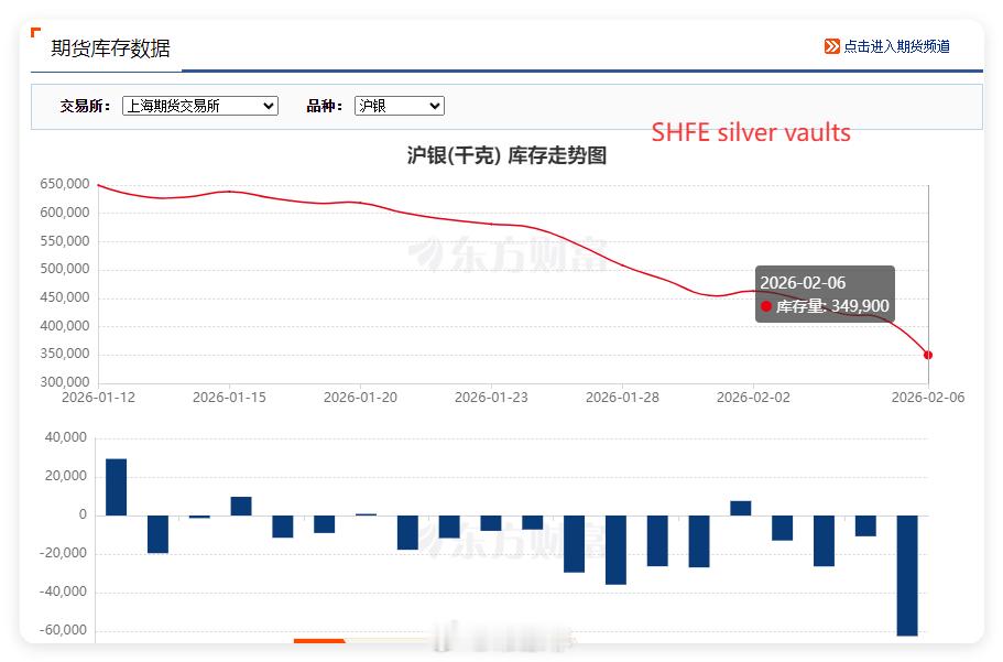 🚨上海期货交易所和上海证券交易所的白银金库继续下滑至新低。