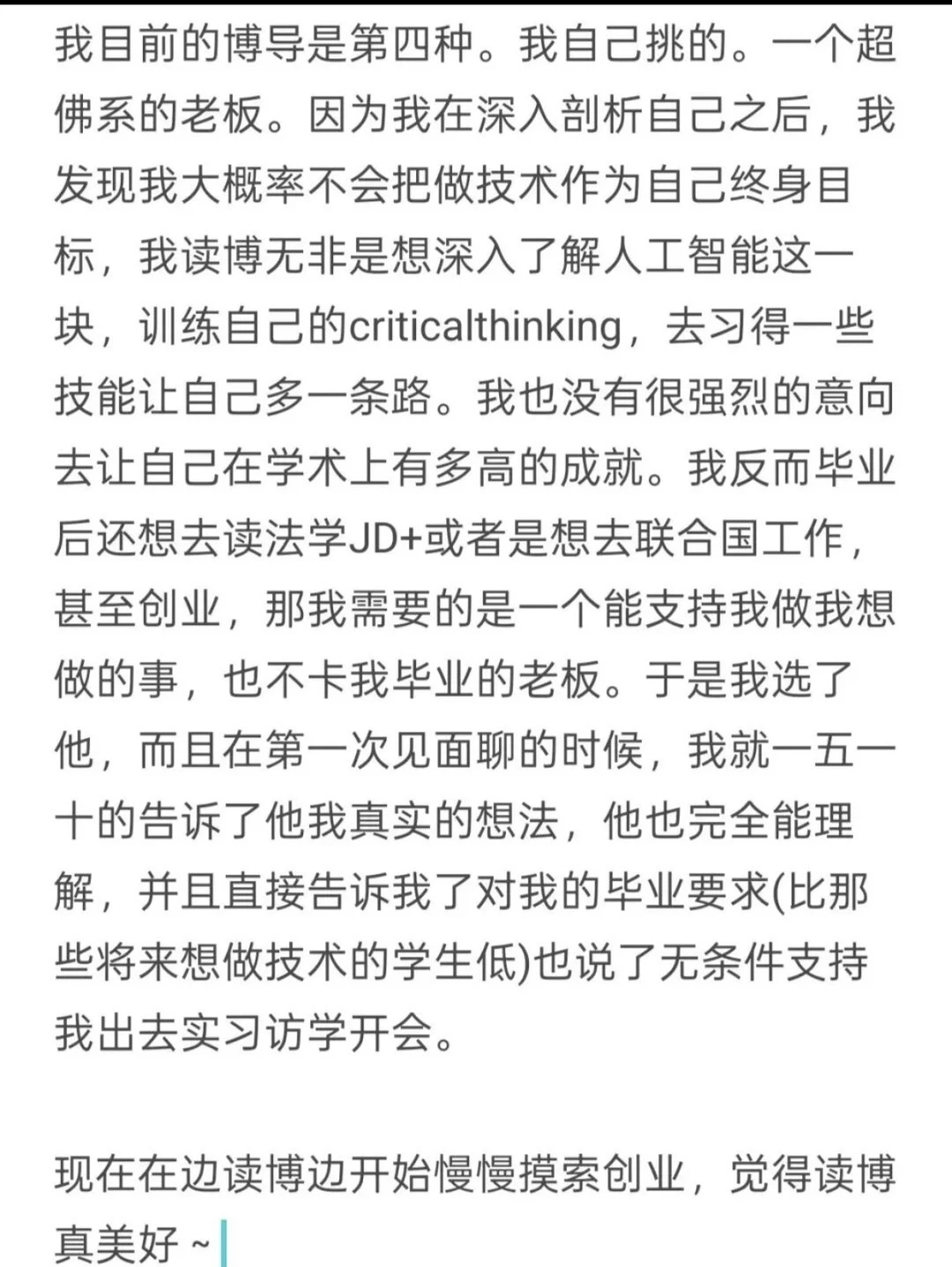 转导师过程中遇上一个属于第二种导师的大佬,想让我去他那,我想办法推脱掉了,我这爱自由的性子怕是受不了读博这几年被按头做项目打工,然后还面临延毕。当然这种大佬一般人脉都还挺厉害的,如果看重人脉,也能接受这种生活的人,可以去。