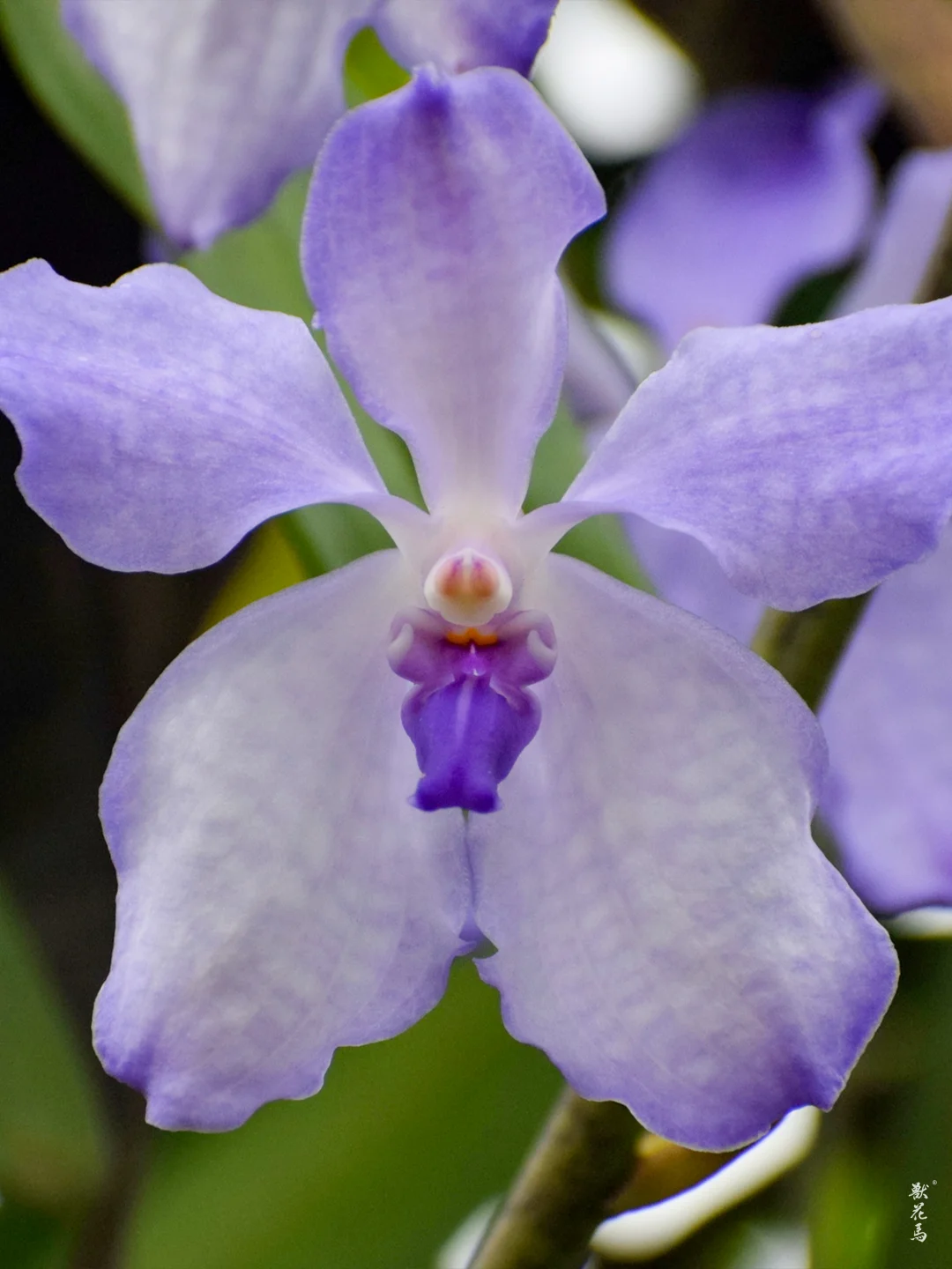 💎 唇瓣3裂,侧裂片白色缀黄斑,中裂片深蓝色如舌形,花姿华贵典雅