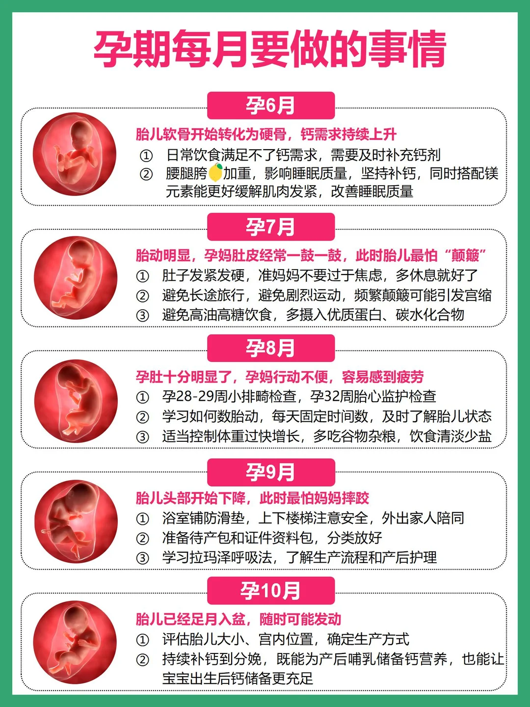 ✅孕晚期8-10月:胎儿大部分器官发育完善,胎位开始变化,比较怕劳累和摔跤