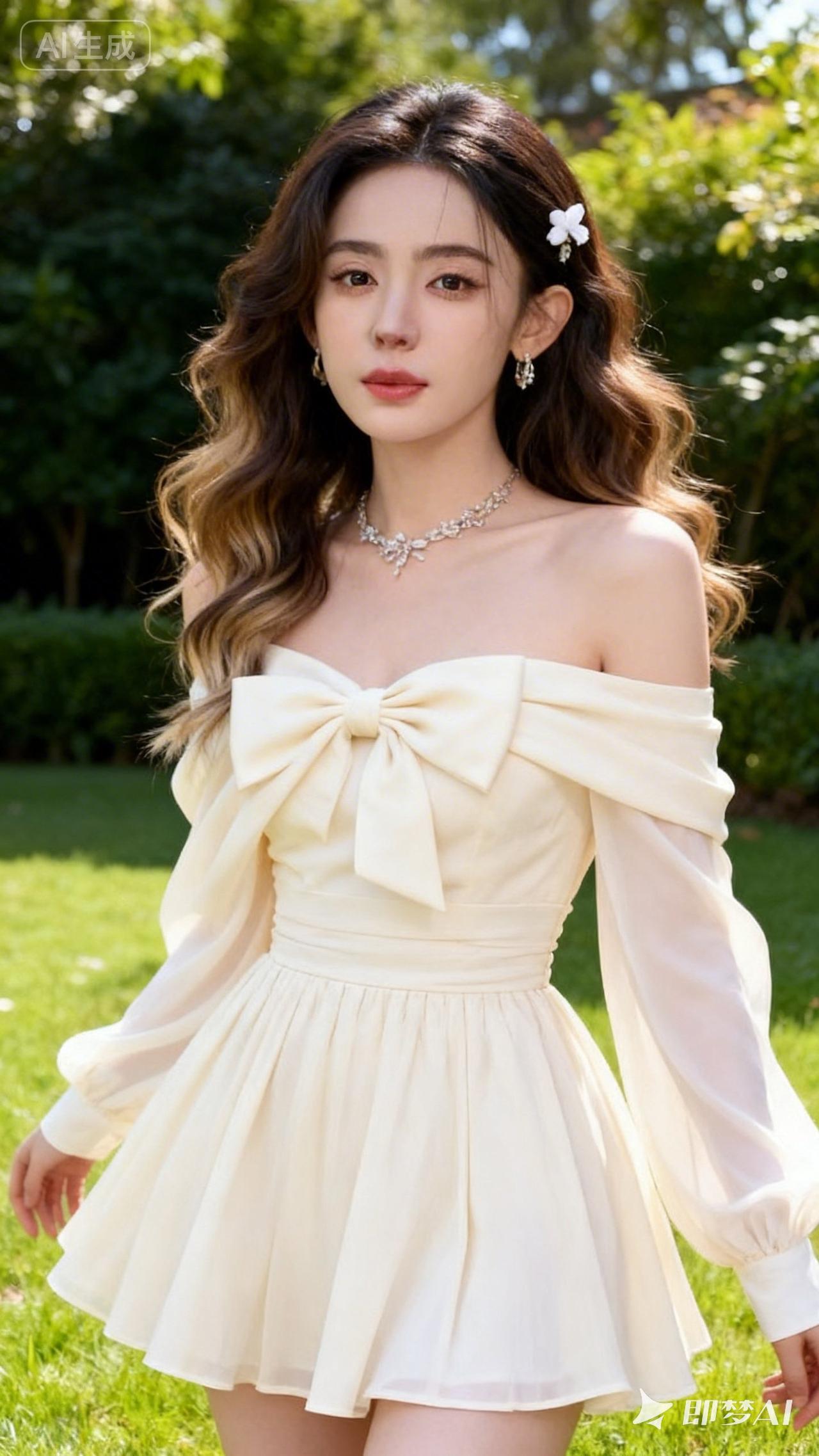 优雅白裙,夏日清新,自然光下绽放迷人魅力!🌸💃