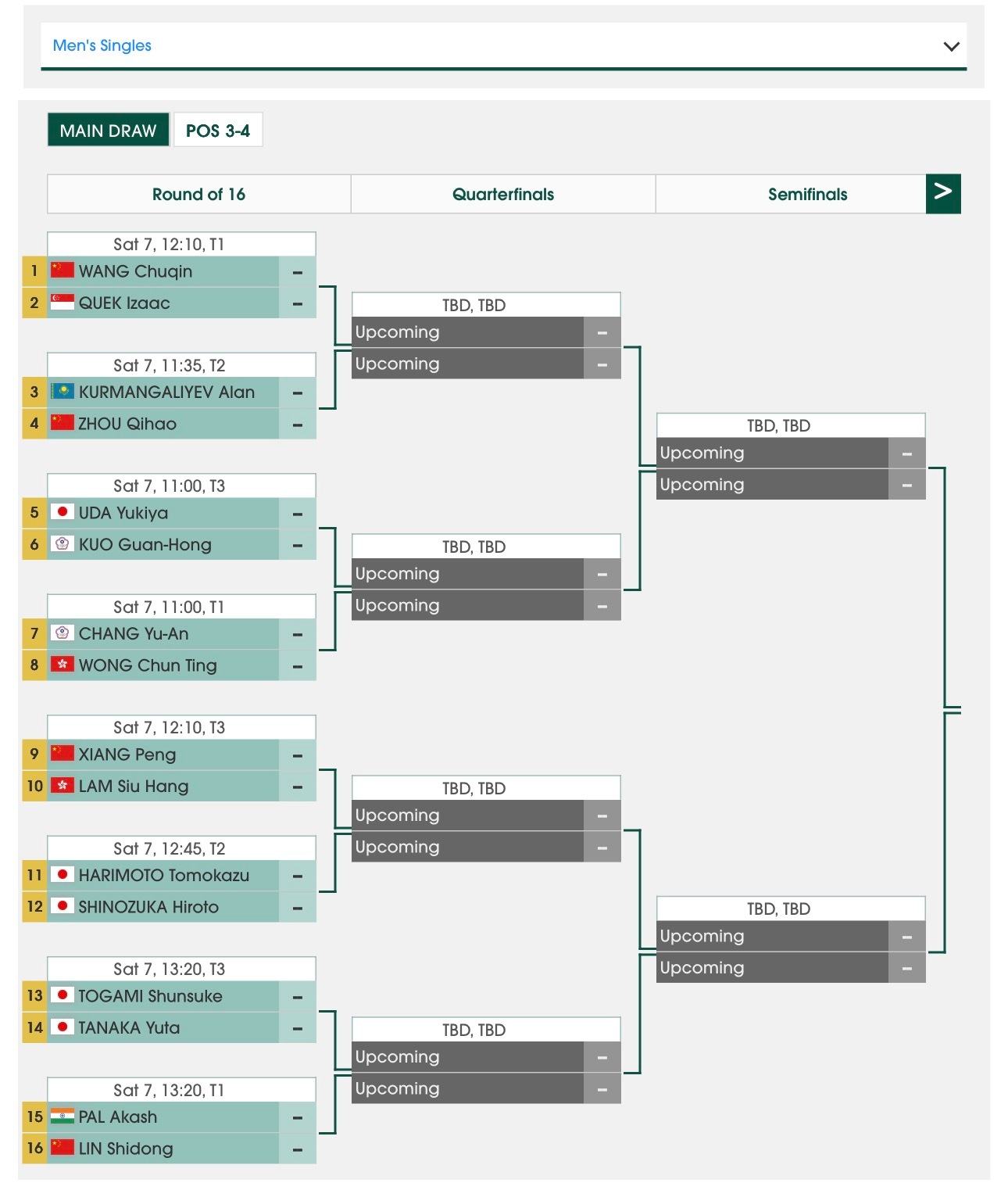 海口亚洲杯 中国队2月7日赛程11:00 陈熠🇨🇳vs早田希娜🇯🇵 2号台11:35 孙颖莎🇨🇳vs金娜英🇰🇷 1号台11:35 周启豪🇨🇳vs库尔曼加利耶夫🇰🇿 2号台12:10 王楚钦🇨🇳vs郭勇🇸🇬 1号台12:10 蒯曼🇨🇳vs杜凯琹🇭🇰 2号台12:10 向鹏🇨🇳vs林兆恒🇭🇰 3号台12:45 王艺迪🇨🇳vs王曼昱🇨🇳 1号台12:45 陈幸同🇨🇳vs苏籽童🇭🇰 3号台13:20 林诗栋🇨🇳vs帕尔🇮🇳 1号台