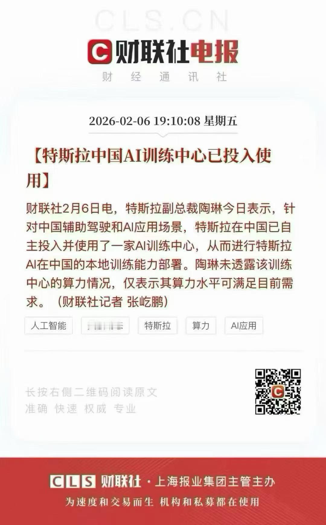 Breaking news!特斯拉副总裁陶琳:特斯拉中国AI训练中心已投入使用;