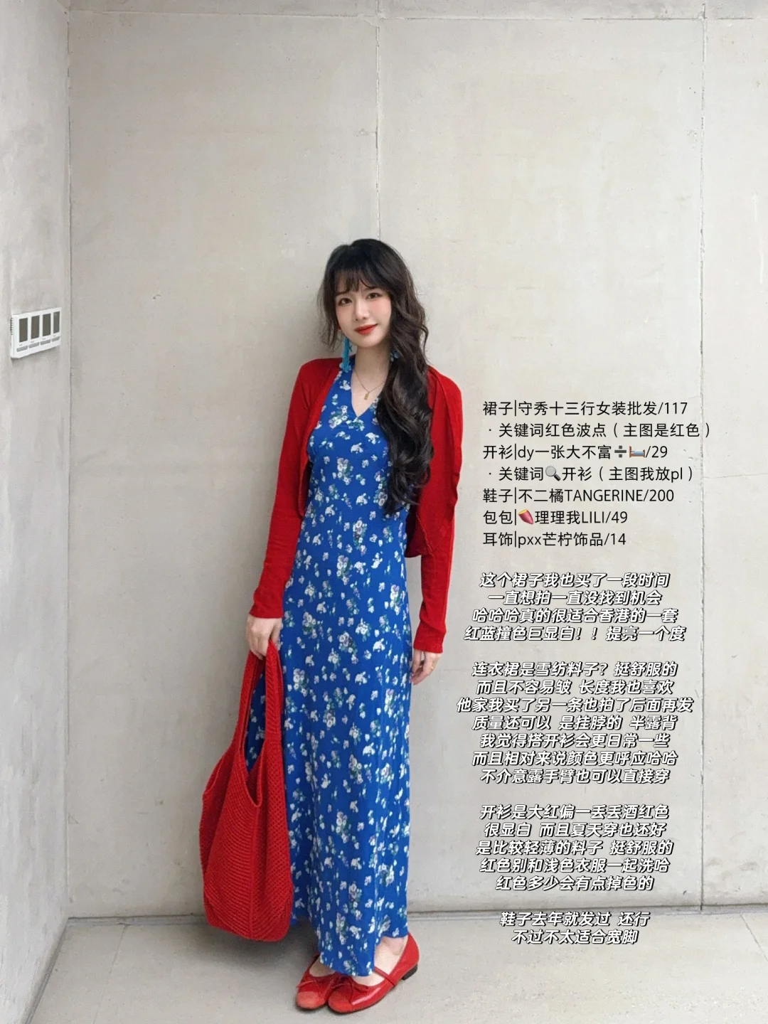 168/107 大家好像很爱看我穿亮色系 红色本来就显白 宝蓝色也显白 两者结合简直显白到没边 和香港澳门很适配的一套衣服! 不加开衫单独穿也很适合海岛 很亮眼 别一朵花穿个凉拖 就很有度假风情啦 哈哈哈最近有出行的姐妹可以考虑~ 性价比我觉得还是不错的 质量对得起价格 这个夏天要多多尝试明媚亮色系! 多穿漂亮小裙子🥰