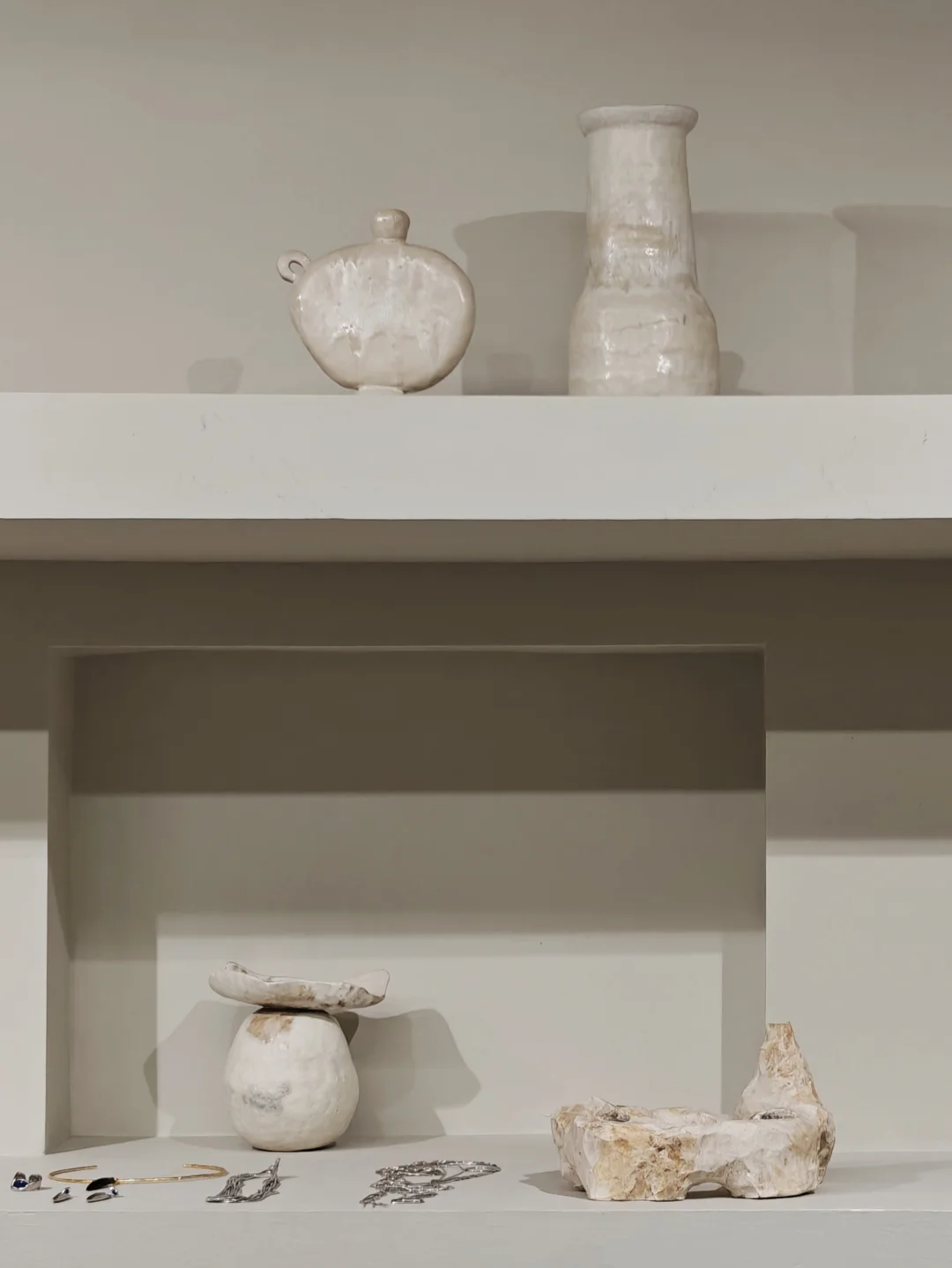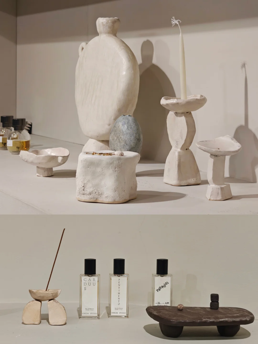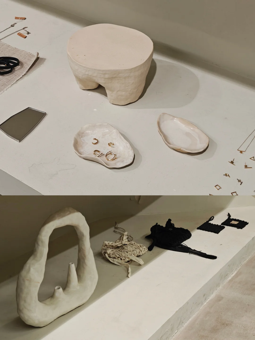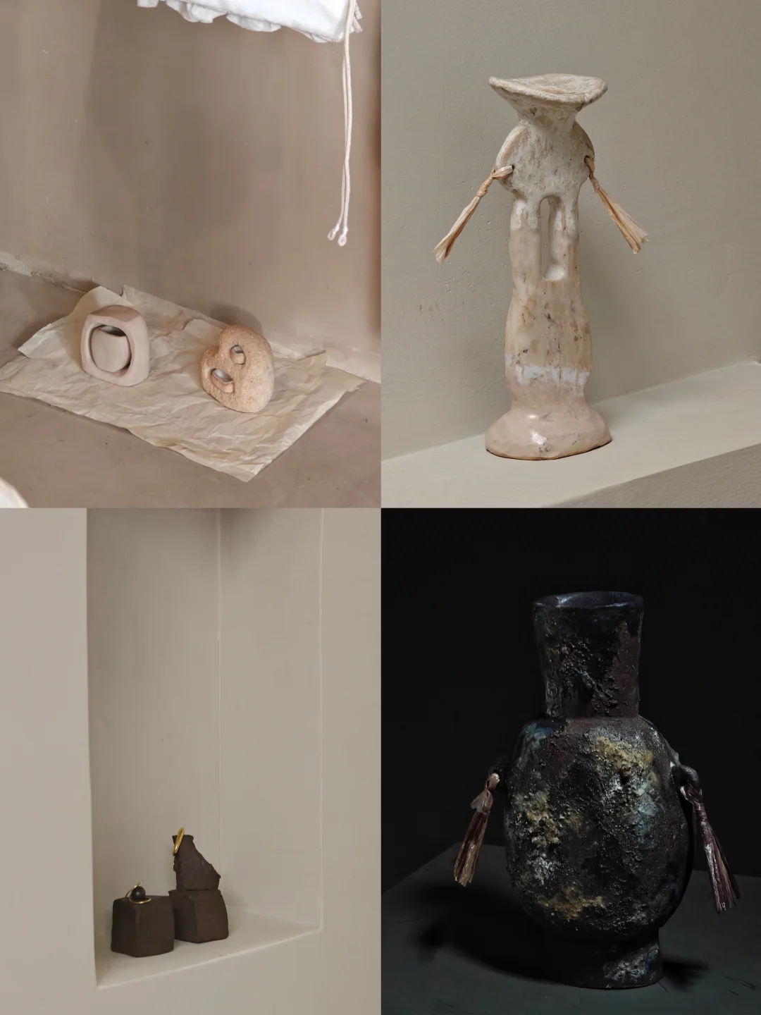 🖌️她们的家乡记忆,一个浓墨重彩,一个云淡风轻。在作品表达上,倒是颇有共同点。颜色上,她们偏爱柔软温润的象牙白,形状上,则喜欢包容万物的自然圆