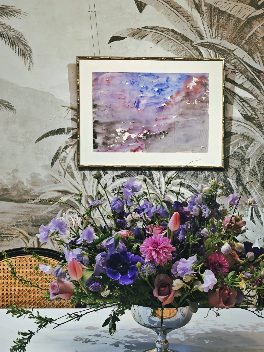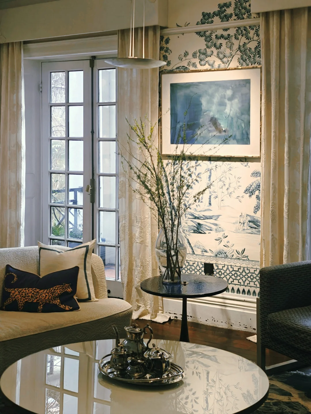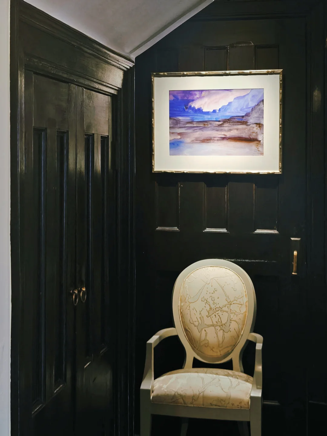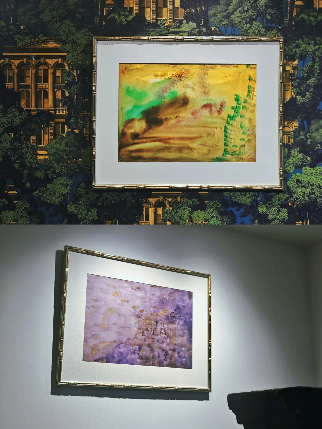 每次来这座三层洋房,布置都会有变化,可谓常看常新。布展依旧是将画作与不同功能和主题的房间有机融合,游走其间,获得沉浸式的观展体验。每个房间都有华丽的花纹壁纸,拍照的话建议穿着素色和浅色衣服。