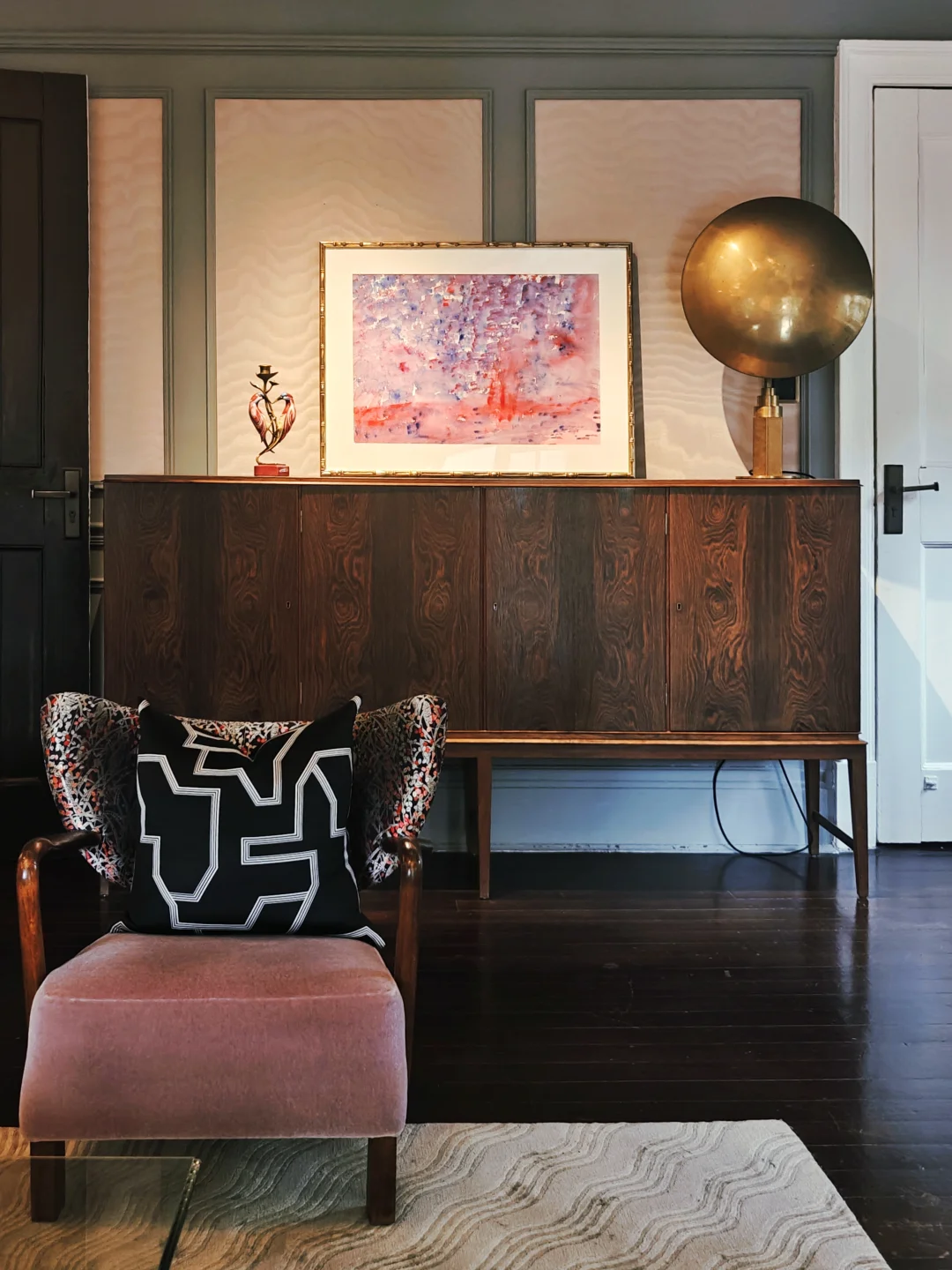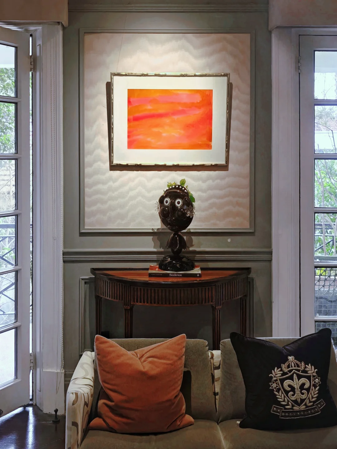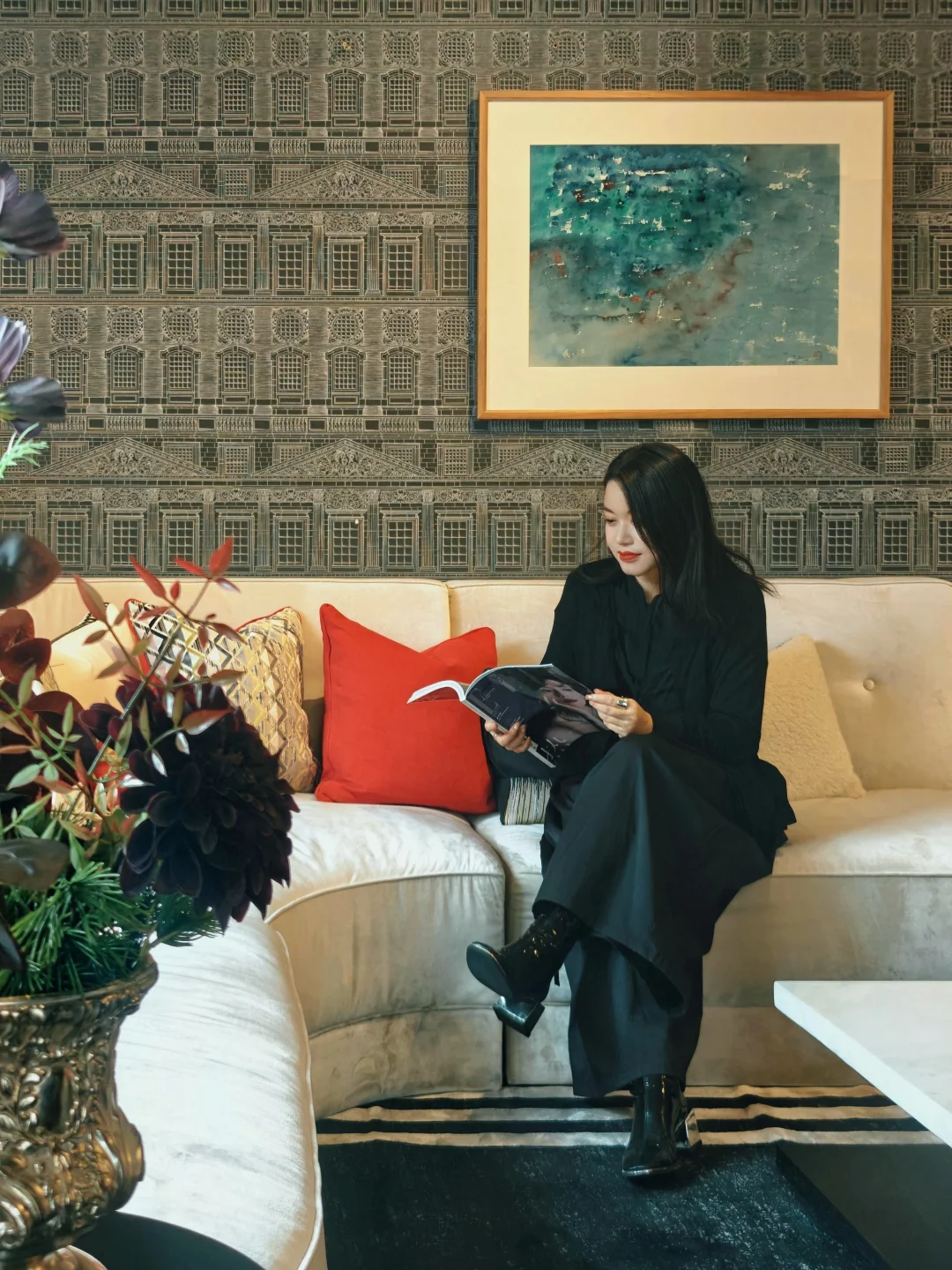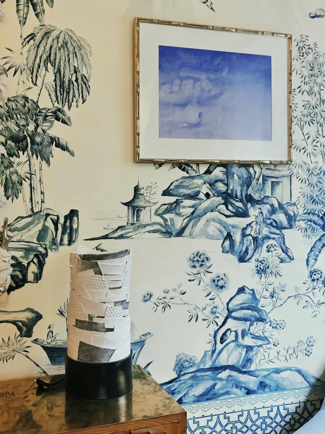 每次来这座三层洋房,布置都会有变化,可谓常看常新。布展依旧是将画作与不同功能和主题的房间有机融合,游走其间,获得沉浸式的观展体验。每个房间都有华丽的花纹壁纸,拍照的话建议穿着素色和浅色衣服。