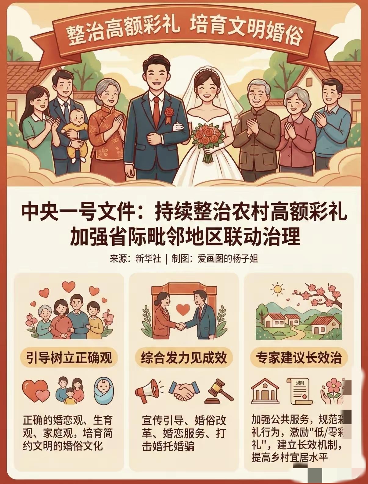 彩礼降了情分没了?中央一号文件动真格整治高额彩礼, 省际联动直接封死钻空子的路,媒婆没了操作空间, 丈母娘们心里五味杂陈,到底是解了光棍的愁,还是寒了姑娘家人的心? 以前县域限价各管各的,跨个县就能抬高彩礼,如今一张网全兜住,可大家都懂,农村里高额彩礼背后,藏着姑娘们的安全感。 保障体系没跟上的地方,彩礼就是她们婚后的保命钱,硬生生降彩礼,没了这层底气,姑娘的未来谁来托底? 一年挣两万要三十万彩礼,这本就是离谱的买卖,治彩礼根本不是简单砍数字,而是要把农村女性的社保、养老兜底做实。 只堵不疏的整治,最后疼的还是想好好嫁人的姑娘。 你们觉得该怎么平衡彩礼整治和姑娘的安全感?