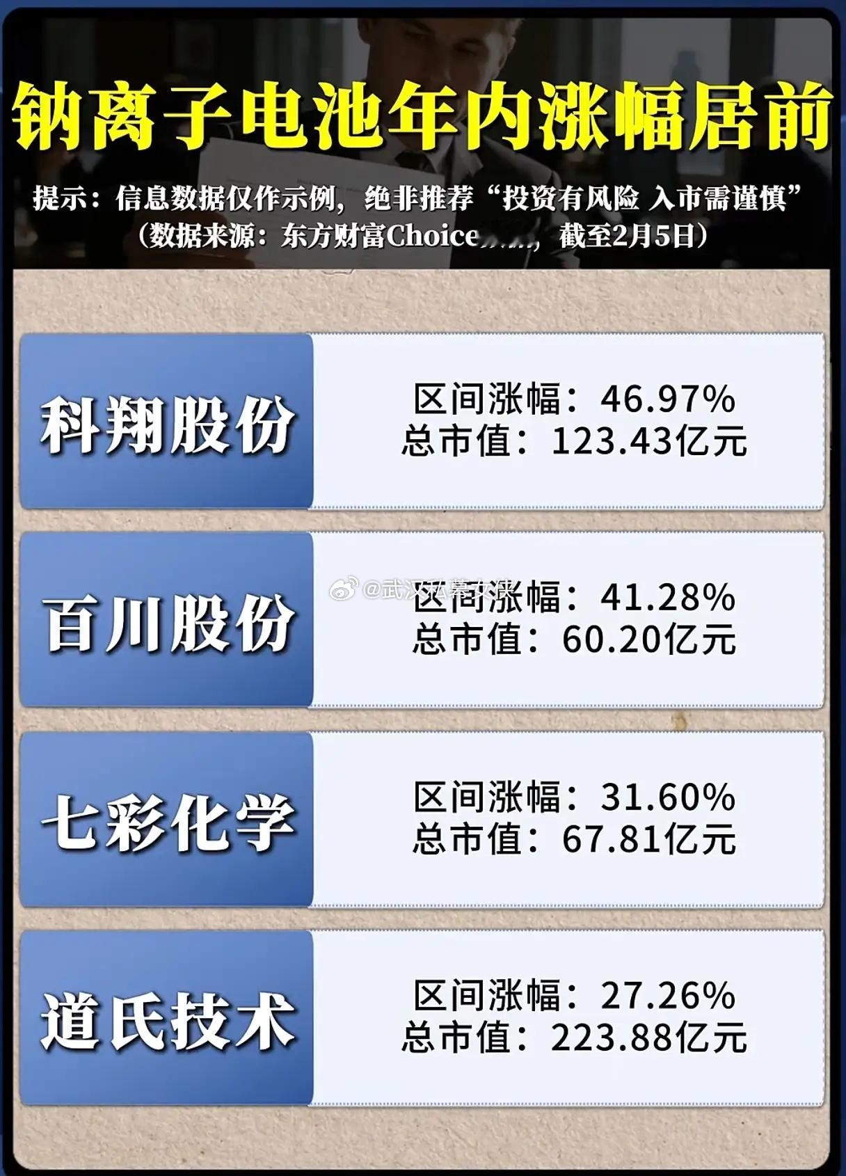 当科翔股份年内涨幅冲至46.97%,百川股份、七彩化学等一众企业集体起舞,钠离子