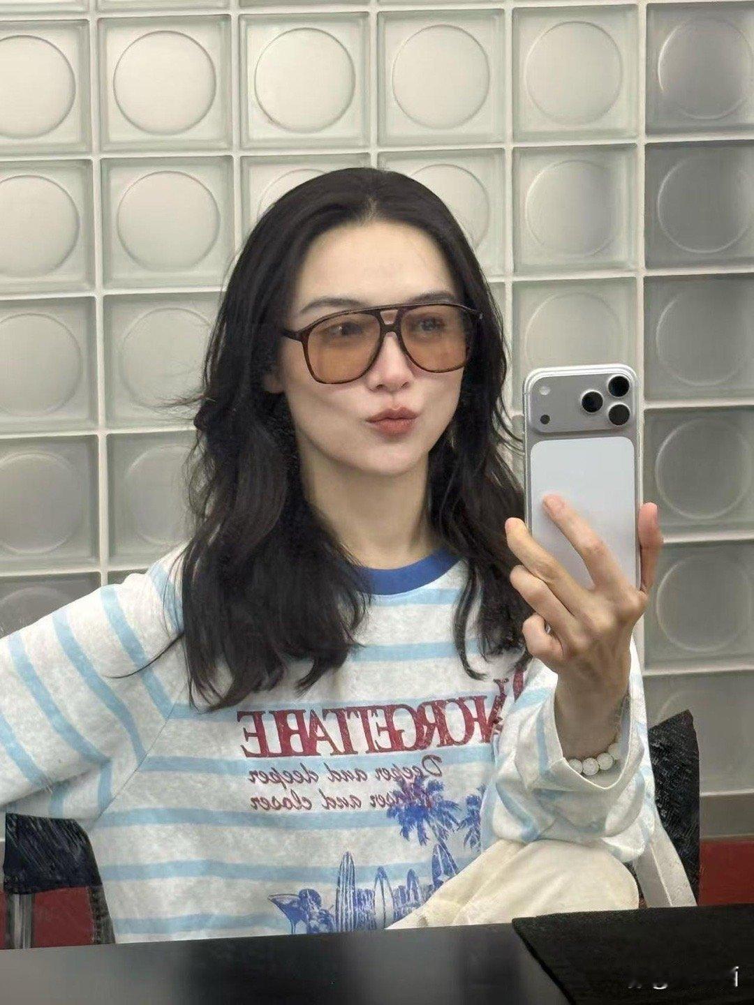 宋佳的中年穿搭太有范了!条纹长袖搭米色长裤,简约休闲还超减龄,随性自在的氛围感拉