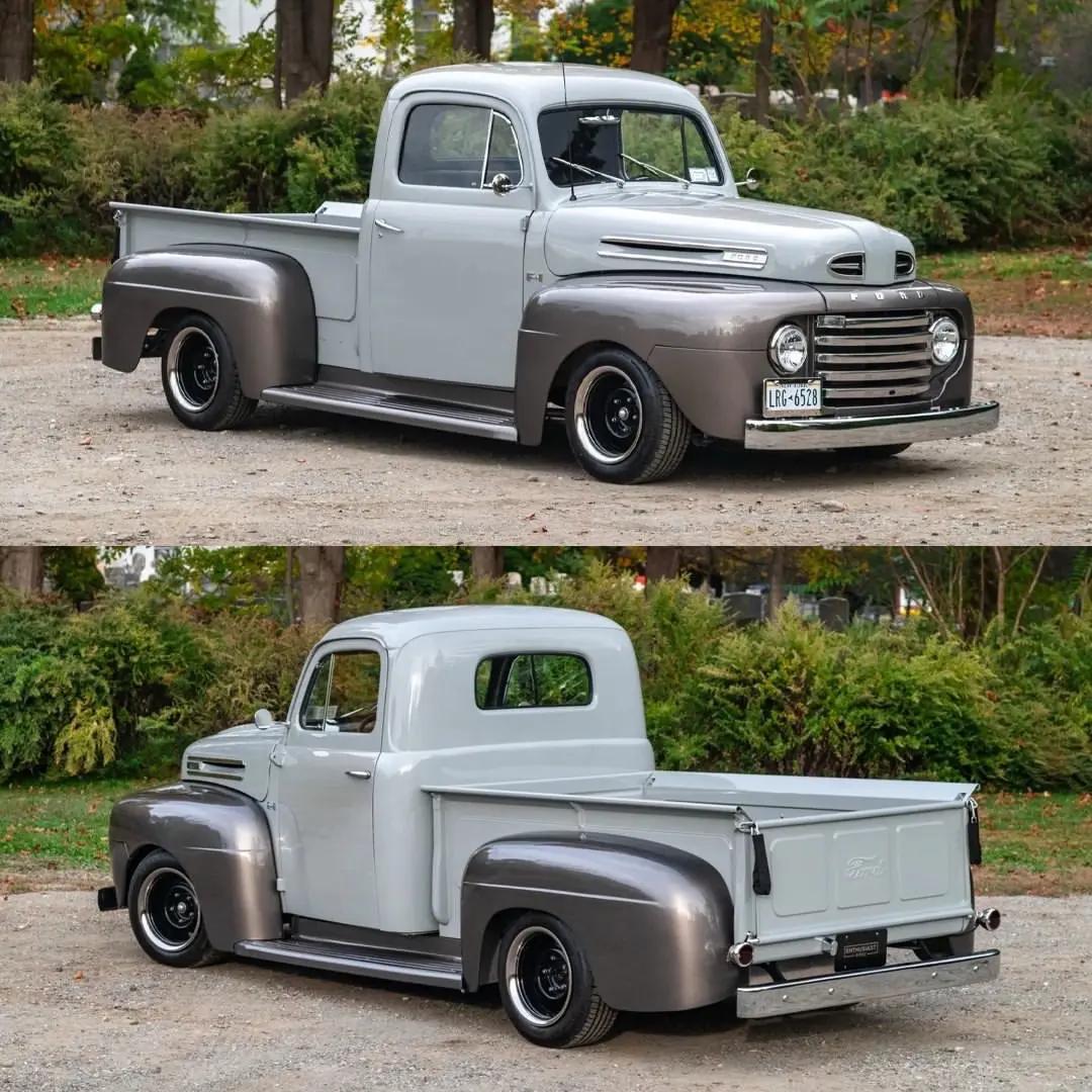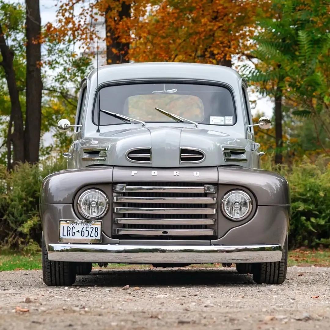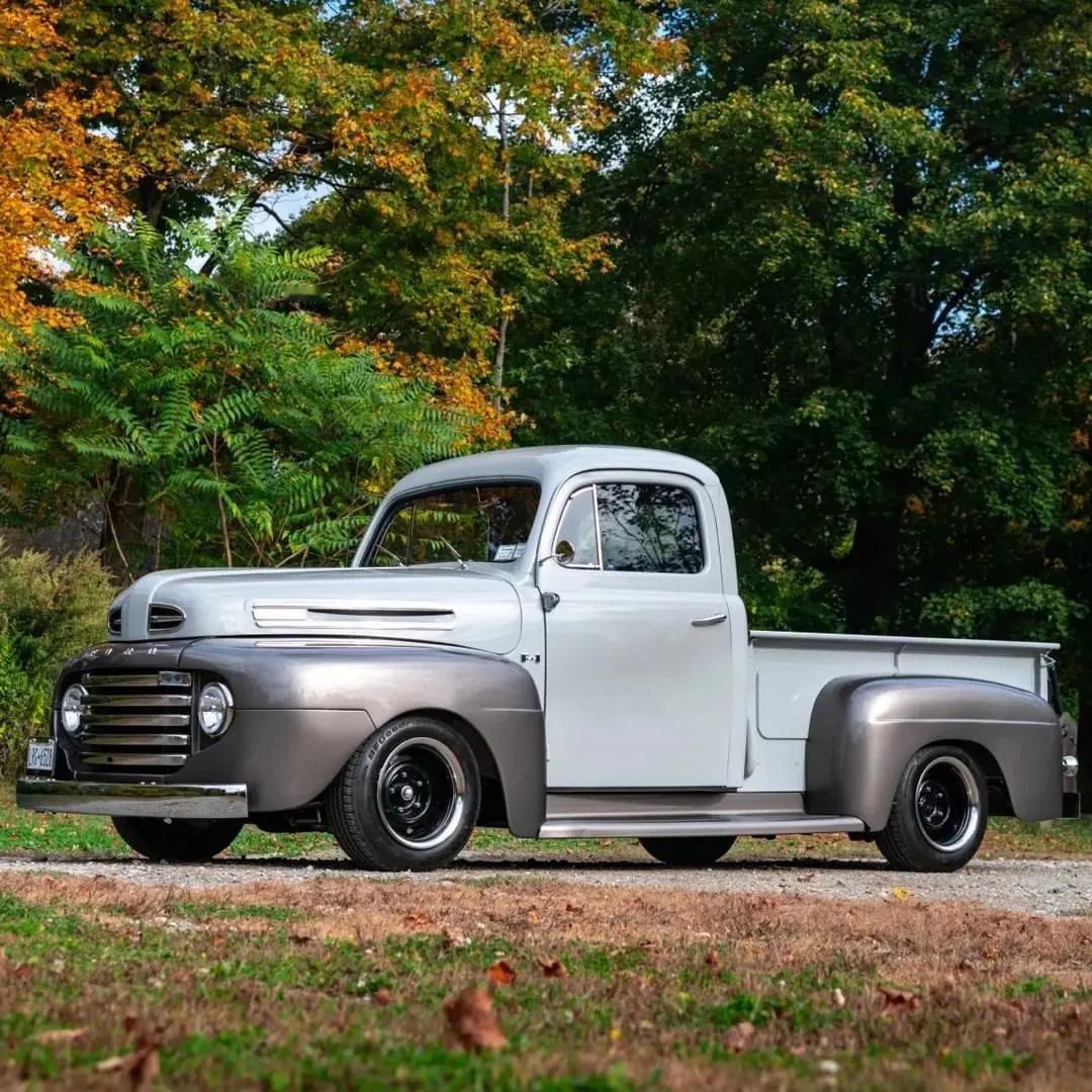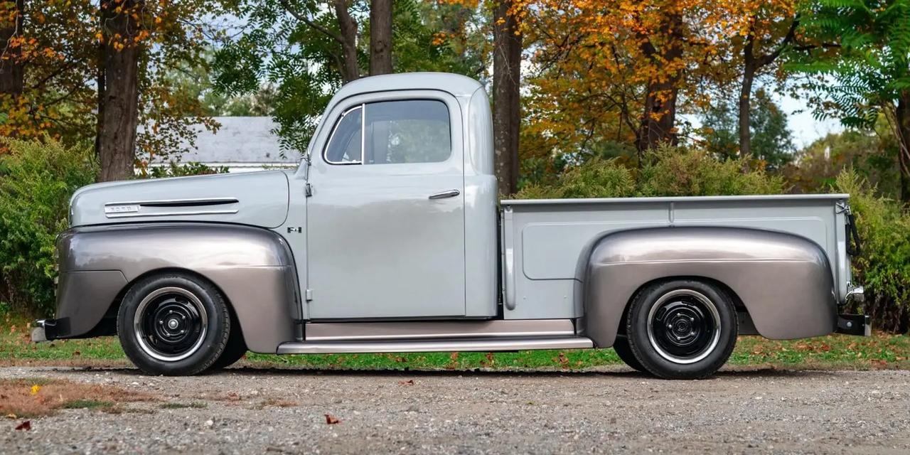 1949年款 Ford F-1 上市于二战后,作为福特首代 F-Series 的重要年款(该系列自1948年末上市,1948–1952年持续生产),它标志着卡车从轿车设计中独立出来、成为专业化工具的起点。 这台半吨级皮卡可选平头(Flathead)V8 239 cu in(约3.9L)/ ≈100 马力,匹配三速手动变速箱,114 英寸(约 2896 mm)轴距与粗犷车架,简单的机械设计带来易维护与长期可靠性。 在1940年代末的美国,F-1 不只是工具——它承载着退伍士兵返乡、乡村与工业复兴的故事;那道硬朗的车身线条与朴素的功能细节,既是劳动的美学,也是代际记忆的载体。福特F1 福特皮卡 知识 经典老车 汽车