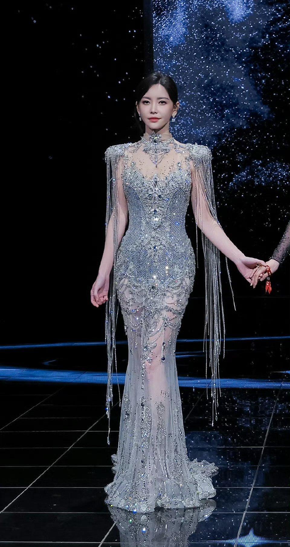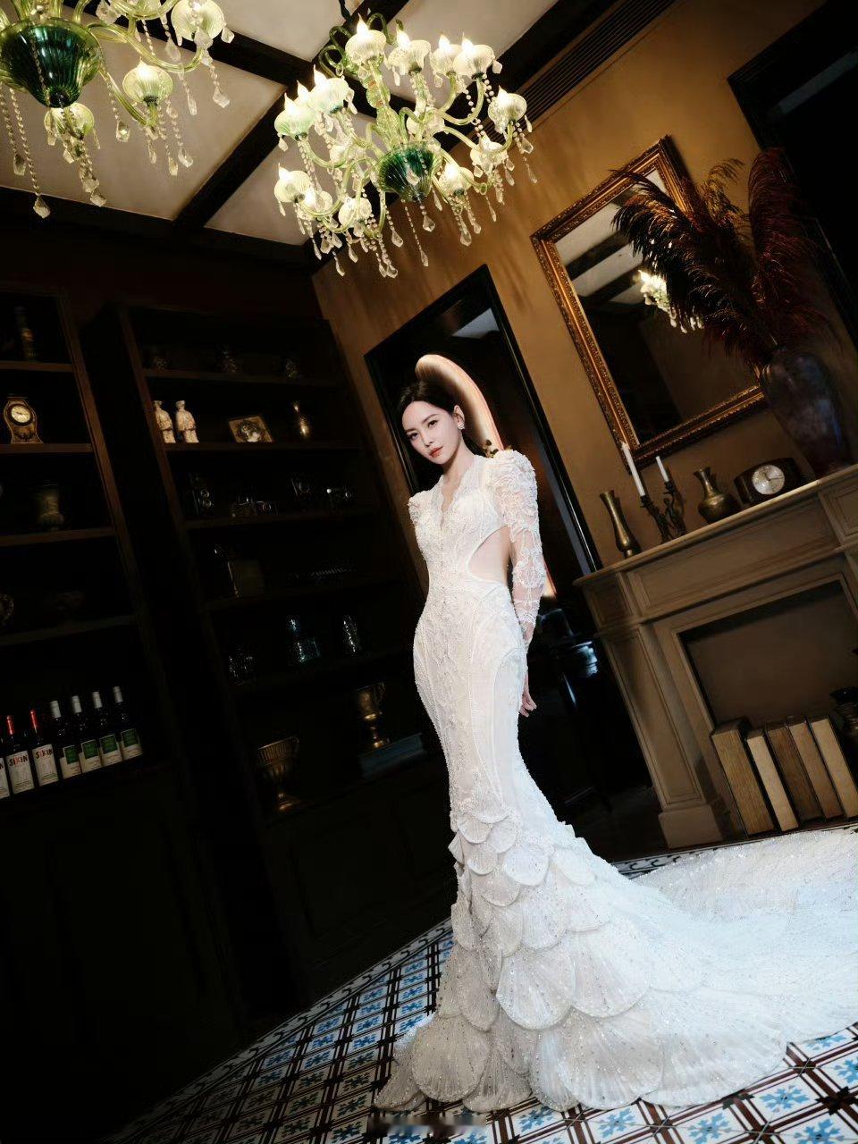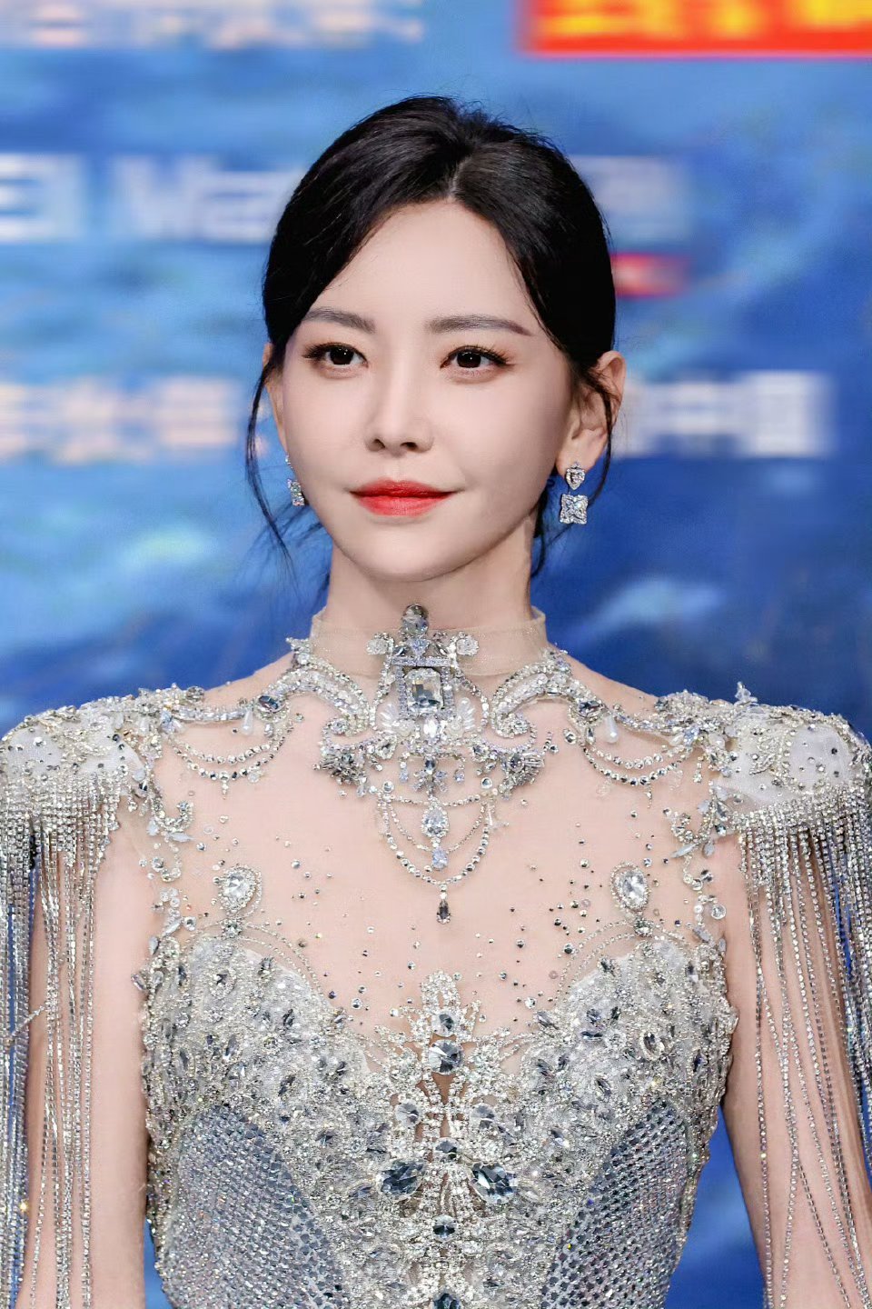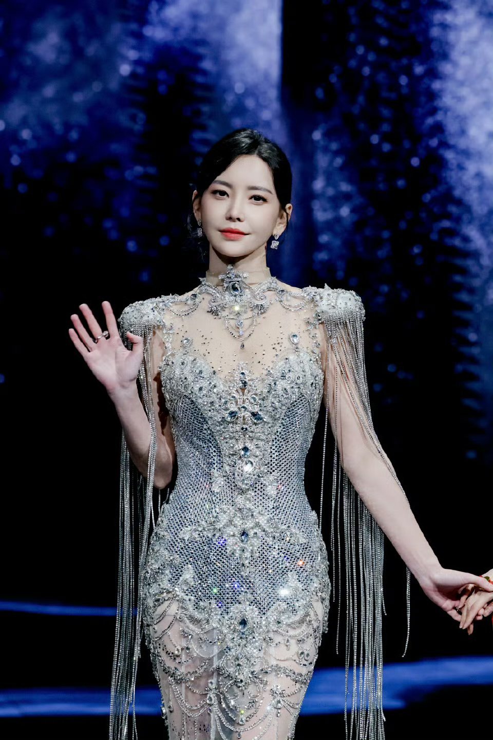 刘亦菲这造型也太美了!抹胸花边裙,花边在灯光下闪得我移不开眼,卷发温柔又带点小妩
