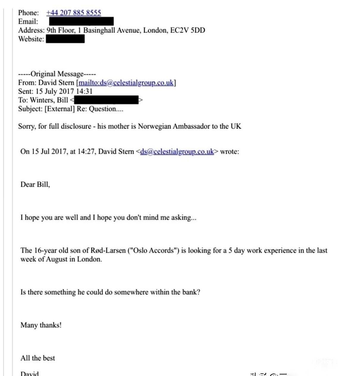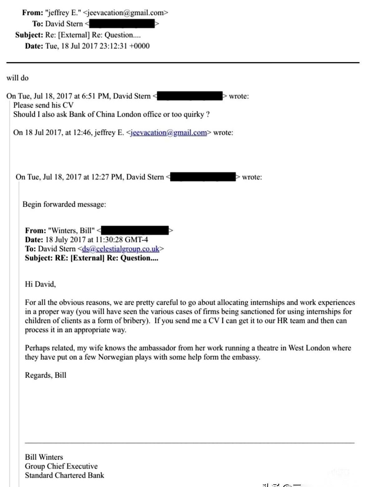 我跟你说个事儿,简直能把人笑死。 动用爱泼斯坦的关系网,费老大劲给一个16岁的公子哥在伦敦中行塞了个实习。 结果人家第二天直接玩失踪,不干了。 这爹是谁呢?前联合国副秘书长。嫌儿子暑假闲着,想搞个5天的“工作体验”,镀镀金。 起初找的是渣打,人家CEO是真人间清醒,一封邮件直接怼回来:给客户子女安排实习?在我们这儿叫“贿赂”,别想了,老老实实走HR流程。 搬出“孩子他妈是挪威驻英大使”也没用,人家鸟都不鸟。 这边碰了壁,那边就找到了中行。 中行也是给了天大的面子,绕过所有考试和流程,直接“特别优待”给办了。 结果呢?好戏开场了。 这少爷第一天上班就emo了,回家跟他爹抱怨,说办公室里没人围着他转,感觉自己被冷落了,特别“痛苦”。 他爹也是绝了,居然真跑去找爱泼斯坦诉苦。 中行那边都懵了,赶紧解释:第一天就是熟悉下环境,后面几天安排得满满当当,要去交易大厅跟交易员混,要去核心研究团队学做研究,还要参与项目……我们都把最好的拿出来了,他到底还想要啥? 结局就是,第二天,这位爷直接不接电话,人也不来了。 把帮忙牵线搭桥的人给气的呀,在邮件里直接破防,大骂这孩子是idiot,说这事儿搞得巨丢人,为了你这个后门我们担了多大风险花了多少精力,结果就这? 你说逗不逗? 我们普通人挤破头都想要的机会,在有些人眼里,还不如躺在家里打游戏舒服。 这大概就是世界的参差吧。