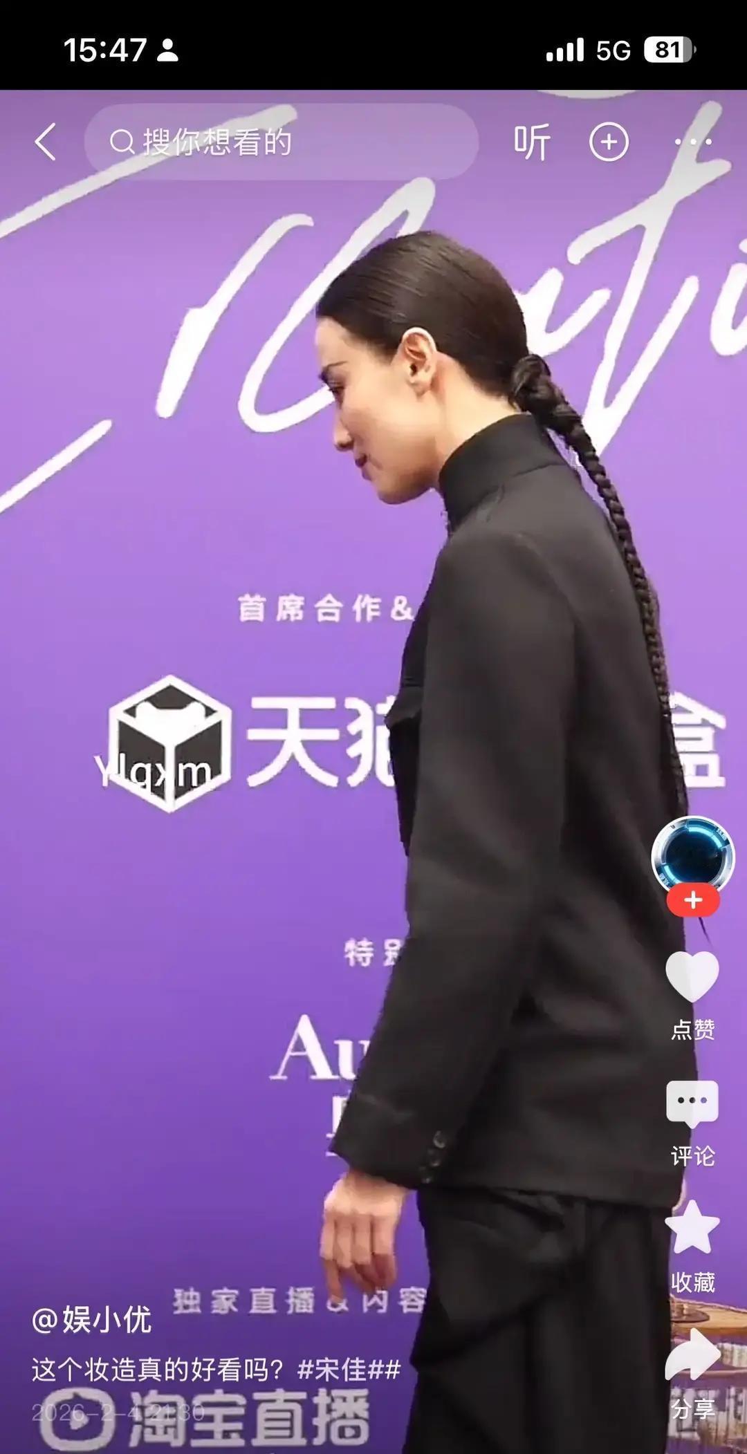 宋佳今晚红毯造型直接把我看呆。 她穿一身改良旗装,领口立得笔直,下摆绣满暗金云纹,最炸的是头发,左右各编一条粗辫子,盘成鸟笼状扣在头顶,远看像顶着一对小灯笼。 镜头拉近,发髻里还插了根细金簪,走路一晃一晃,网友弹幕刷疯了,说这发型像清宫剧穿越。 我盯着看了三分钟,愣是没找到一根碎发,造型师怕是把发胶当水喷。 这身行头换别人早翻车,她愣是压住了,气场全开,红毯秒变秀场。 传统元素玩出新花样,不靠露不靠怪,只靠细节拿捏。 这才是红毯该有的底气。