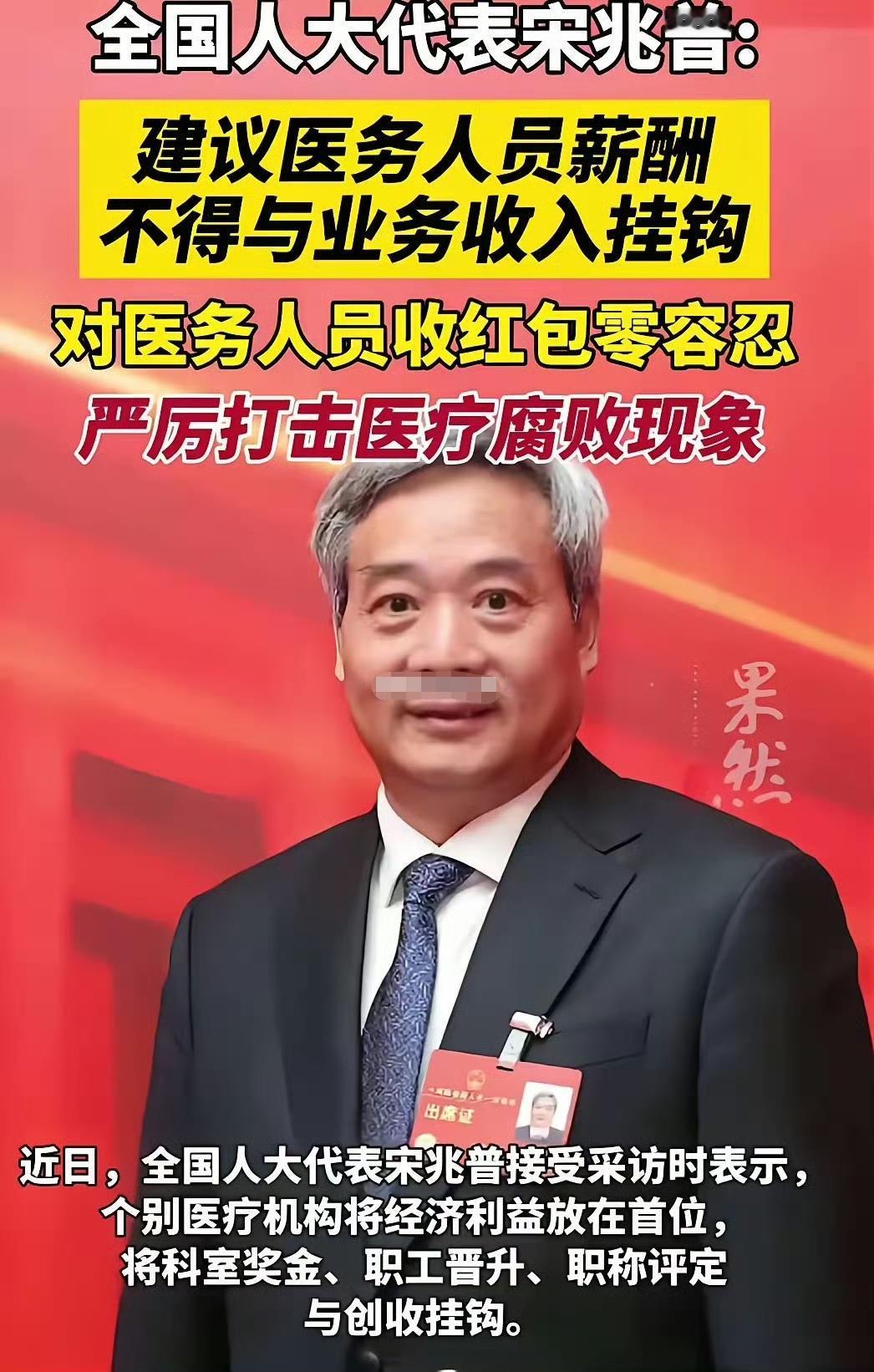 人大代表院长宋兆普建议:医护人员的工资应该和卖药、开检查彻底划清界限!