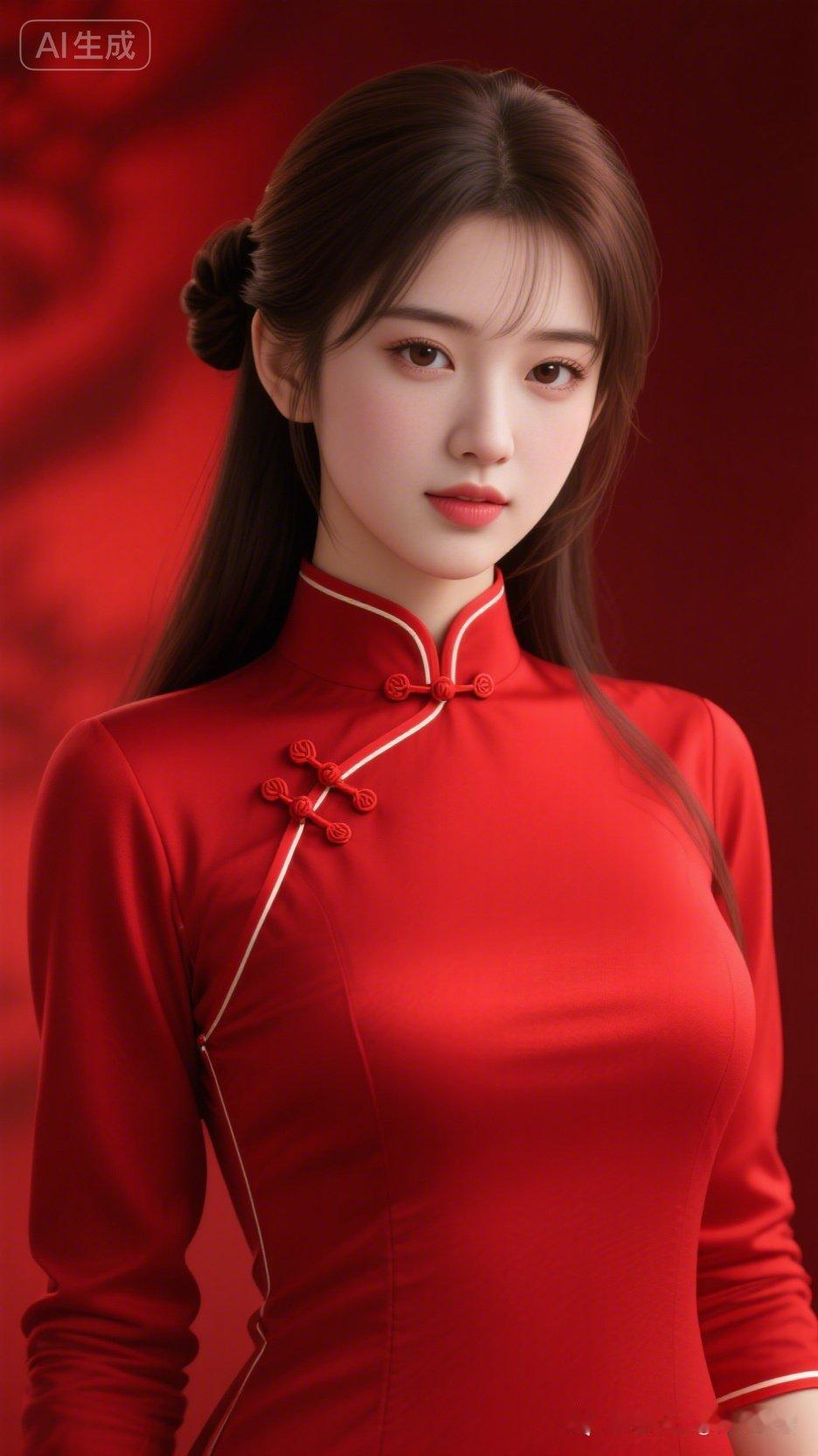 优雅红衣少女,古典韵味十足