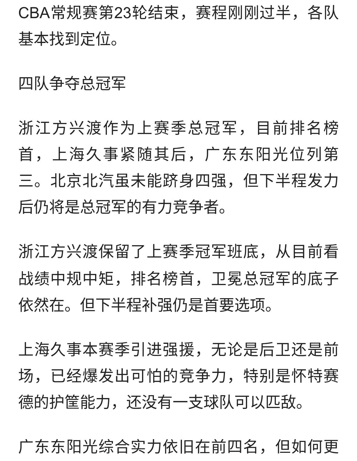 CBA半程综述——四队争冠深圳逆袭四川何时胜