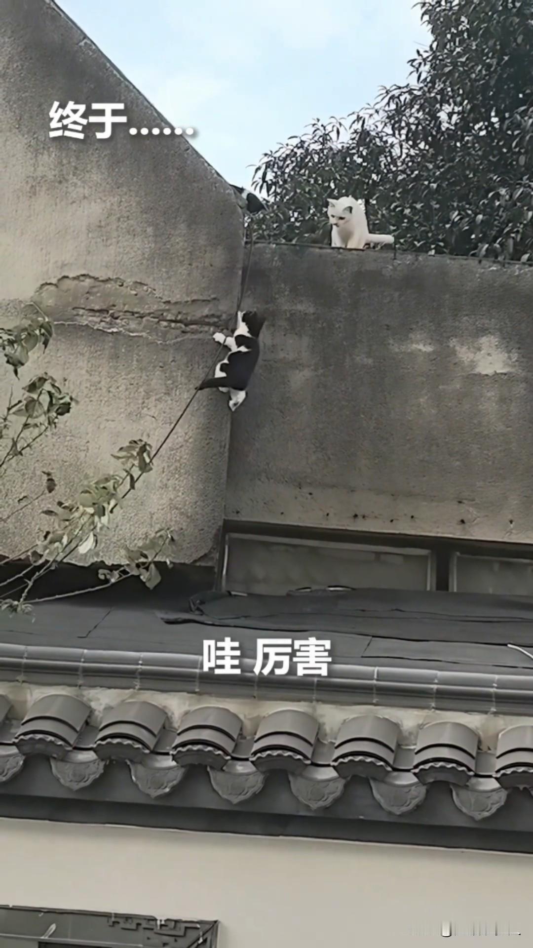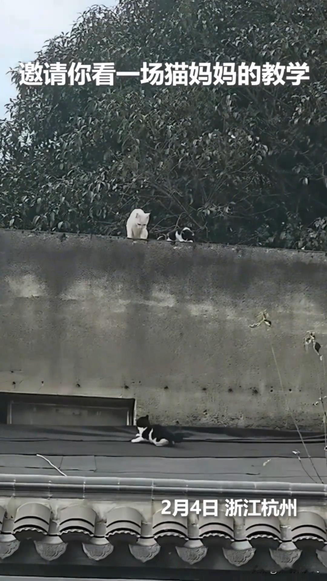 这猫火上人民日报了!2月4日,杭州某小区外墙上,三只身影格外惹眼——白色猫妈妈带着两只毛茸茸的幼崽,正上演着一场生动又暖心的“生存教学课”。一只掉下围墙的小猫无数次摔倒,又爬起继续,竟成了一堂关于坚持与成长的公开课。 “快看,哥哥要上墙啦!”花色的小猫率先盯上了墙顶的光影,圆溜溜的眼睛里闪着跃跃欲试的光芒。 它弓起毛茸茸的身子,后腿蹬地猛地一跃,前爪刚碰到墙面就滑了下来,重重摔在地上,发出“喵呜”一声轻叫。猫妈妈蹲在墙上,尾巴轻轻摆动,没有上前搀扶,只是用温柔的眼神注视着它。 不服输的小猫甩了甩脑袋,再次蓄力起跳。这一次它跳得更高些,爪子在墙面上抓出几道浅浅的痕迹,可还是没能稳住身形,又一次摔落。 第三次、第四次,它的动作渐渐生疏,呼吸也变得急促,小爪子泛红,沾着泥土和草屑。墙上的小花猫在妈妈身边也着急的走来走去,而它却咬着牙,一次次弓身、起跳、滑落,鼻尖渗出细密的汗珠,眼神却依旧执着。 第五次起跳时,小猫的后腿明显有些发软,身体在空中晃了晃,重重摔在地上后,它趴在地不动了,耳朵耷拉下来,发出委屈的呜咽声。 这时,猫妈妈终于动了。它一跃而下到墙根下,用头蹭蹭小猫,仿佛在安慰孩子般。 接着,白色猫妈妈来到墙角前面下,后腿轻轻一蹬,像一片白云般跃起,前爪精准抓住墙面凸起处,迅速上了墙头!整个动作流畅又轻盈。它在墙顶转过身,低头对着小猫“喵”了一声,像是在说:“你看,这样就好啦。” 仿佛受到了鼓舞,小猫猛地抬起头,眼里重新燃起光芒。它站起身,抖了抖身上的草叶,又一次弓起身子。 这一次,它学着猫妈妈的样子,又开始跳跃,一次,两次,三次,摔倒又站起来继续!加油!看见的路人为它捏一把汗! 第四次,只见它后腿用力蹬地,前爪死死抓住墙面凸起,身体紧紧贴住墙壁。爪子在墙上划出“沙沙”的声响,它一步一步艰难地向上攀爬,每爬一步都要停顿一下,稳住身形。中途几次险些滑落,它都凭着一股韧劲硬生生撑了下来。 当小猫终于用爪子“吸附”在墙顶边缘,奋力翻上墙面的那一刻,猫妈妈立刻快步上前,用脑袋轻轻蹭着它的脸颊,发出温柔的呼噜声,像是在为它鼓掌喝彩。 小猫依偎在妈妈身边,舔了舔自己泛红的小爪子,眼里满是骄傲与喜悦。旁边的小花猫也跟着欢呼似的叫了起来,整个矮墙之上,都洋溢着温暖的气息。 这场发生在杭州街头的“教学现场”,被路人无意间记录下来。 网友们纷纷感叹:“猫妈妈的教育方式太智慧了,不包办、不催促,用示范和鼓励教会孩子成长。” “小猫的坚持太打动人了,一次次失败却从不放弃,这就是成长的模样。” 其实,无论是动物还是人类,成长从来都不是一帆风顺的。 猫妈妈用行动告诉我们,真正的爱不是替孩子扫清所有障碍,而是教会他们直面困难的勇气;小猫用坚持证明,只要不放弃,每一次失败都是向成功迈进的一步。 生活就像这堵矮墙,或许我们会经历无数次摔倒,但只要带着勇气与坚持,终会爬上属于自己的顶峰,而那些默默的陪伴与鼓励,正是我们前行路上最温暖的力量。