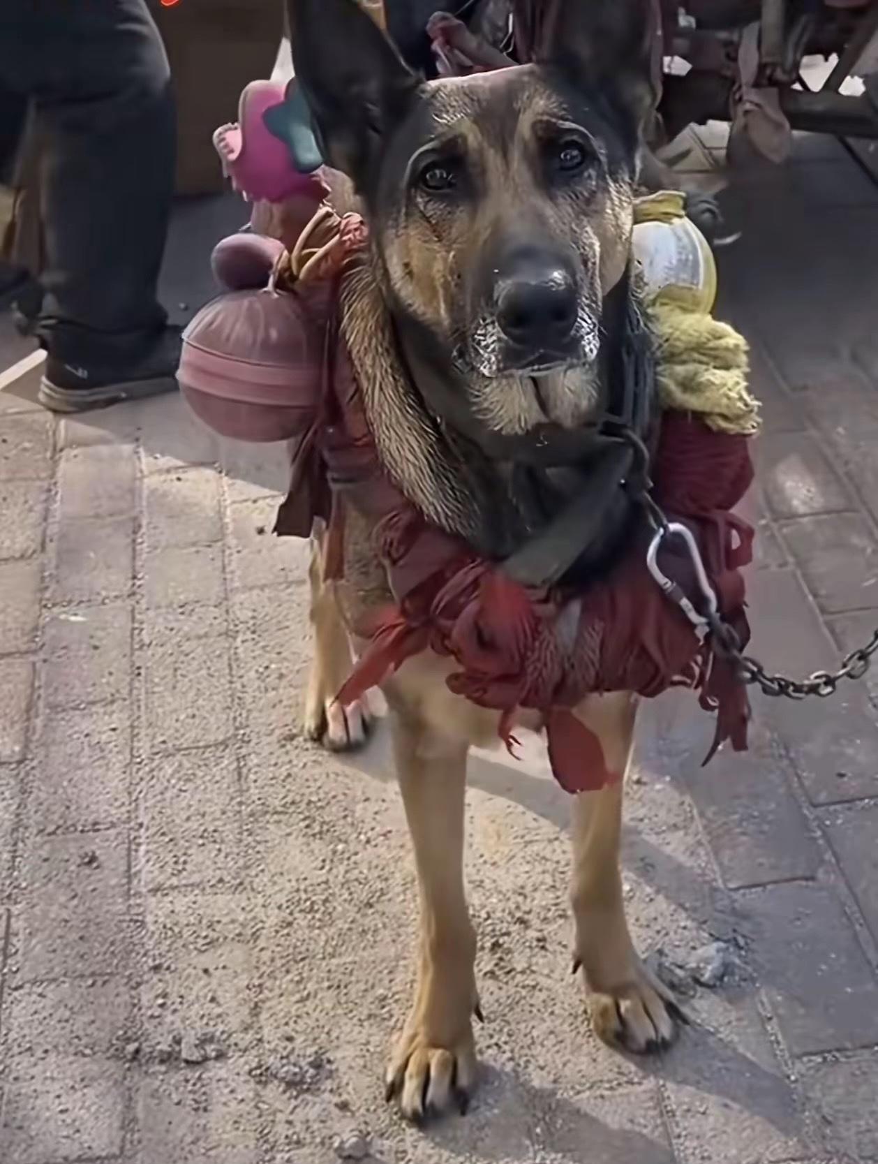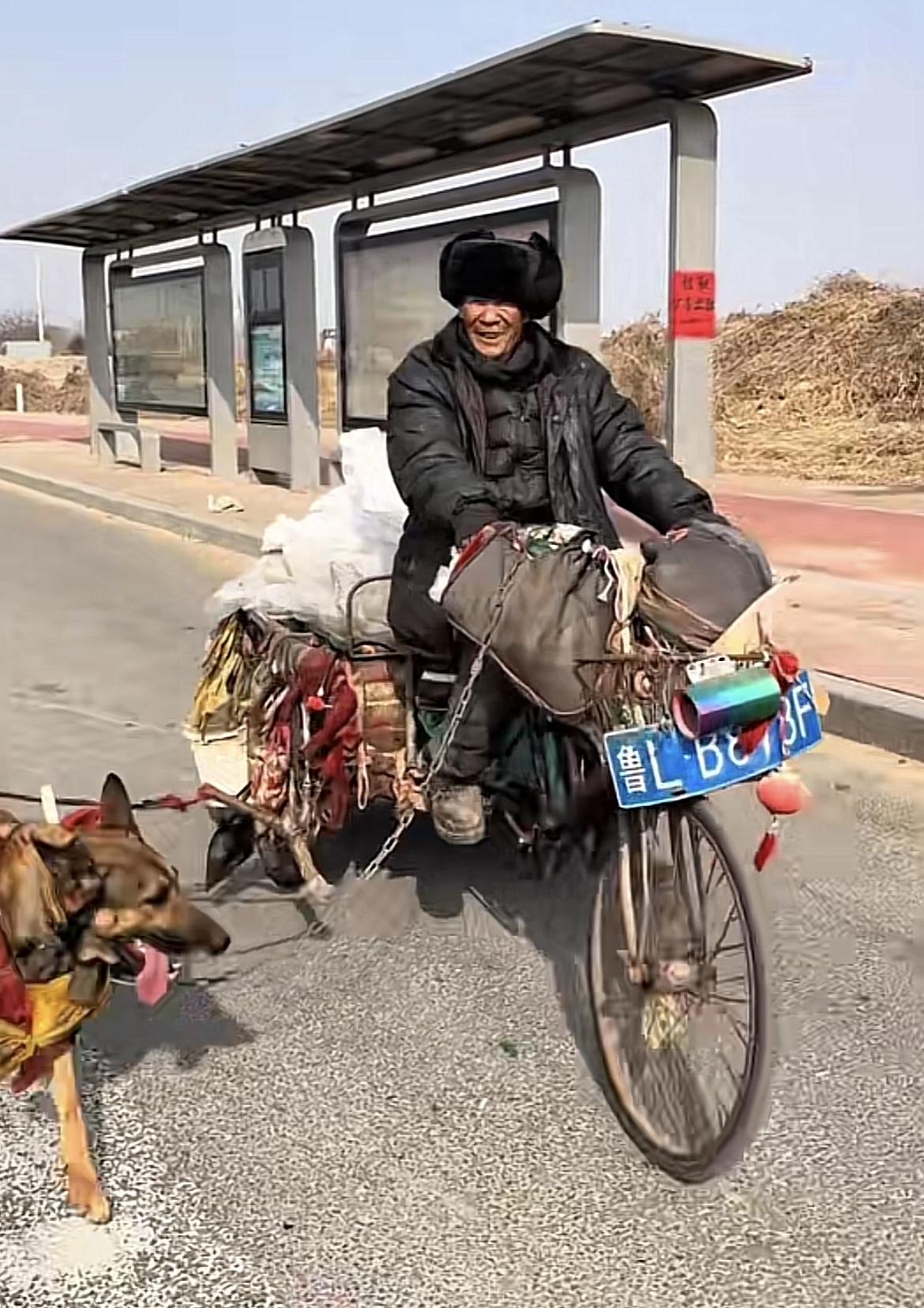 山东日照,人们经常看到一只狗狗,在帮年迈体弱的主人拉车,它拼尽全力的样子让无数