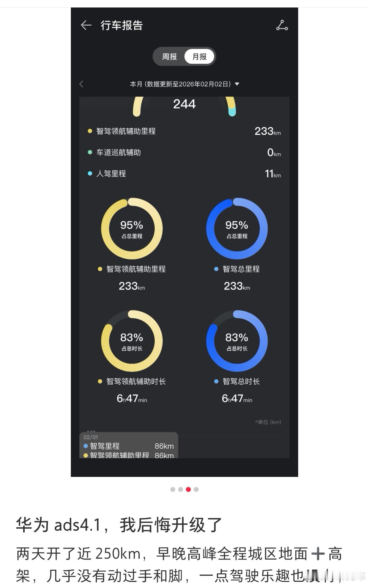 有网友表示,“后悔”升级4.1了,两天开了近250km,几乎全都是交给小艺开,毫无驾驶乐趣。。。
