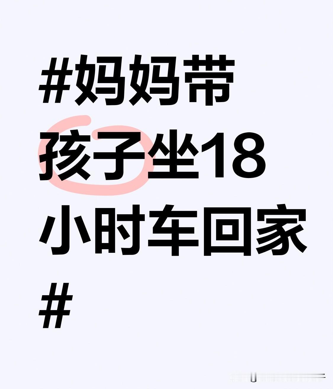 妈妈带孩子坐18小时车回家 妈妈带孩子坐18小时车回家,这背后得有多大的毅力啊!想象一下,狭小的车厢空间,孩子要是哭闹起来,那场面简直“失控”。之前我坐过10小时的车都觉得腰酸背痛,18小时对大人和孩子都是挑战。妈妈不仅要时刻照顾孩子吃喝拉撒,还得时刻安抚孩子情绪。要是孩子调皮好动,在车厢里跑来跑去,妈妈还得紧紧盯着,生怕出意外。这一趟旅程,妈妈就像个超级战士,为了回家,为了给孩子一个温暖的归处,再辛苦也咬牙坚持,母爱真的太伟大了!