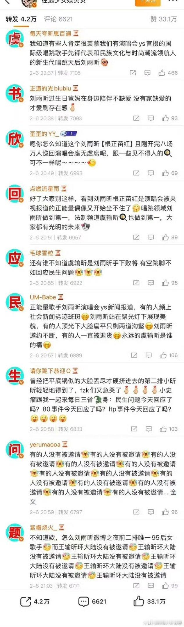 刘雨昕粉丝跟虞书欣粉丝交流起来了?