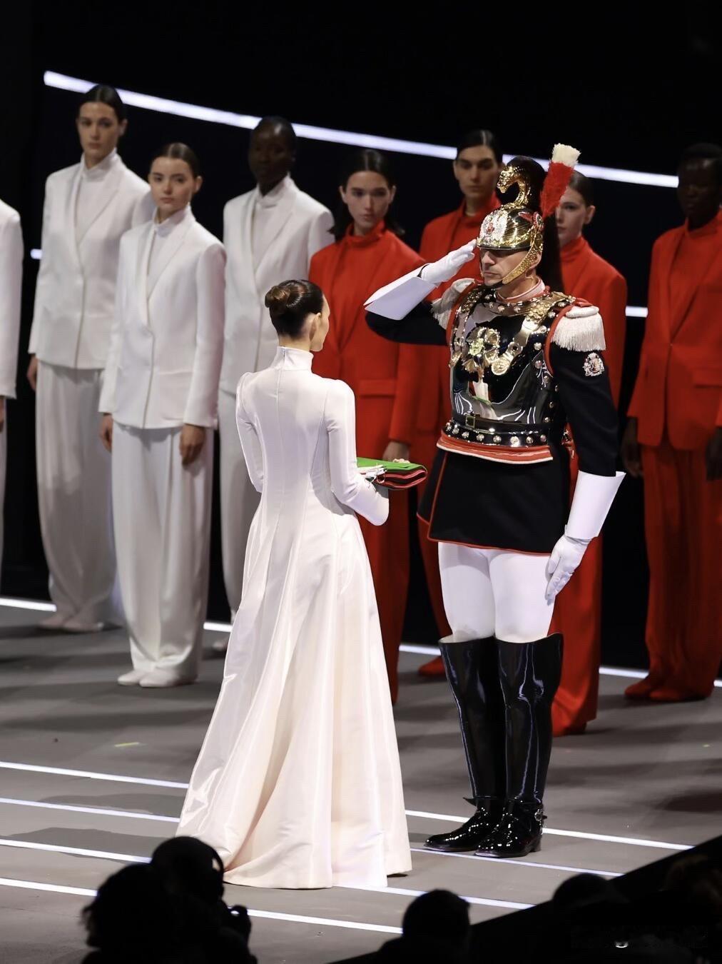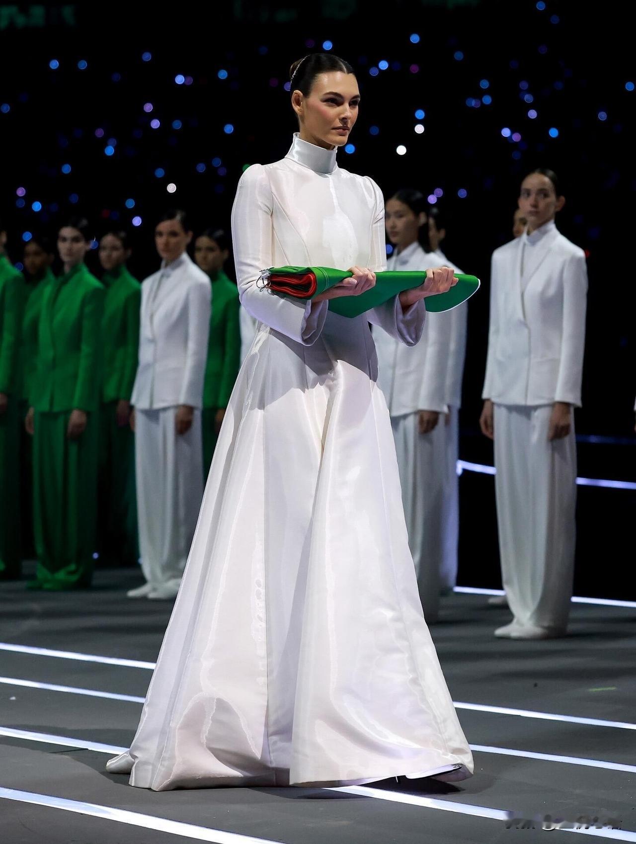 冬奥会开幕式,意大利国宝级美貌出场! Vittoria Ceretti这颜值真的杀疯了, 不愧是意式容颜天花板, 黄金比例的脸看一眼就忘不掉。 一身阿玛尼定制白裙手捧国旗, 简约又典雅,气场直接拉满。 身后的模特队列穿国旗色套装, 还致敬了阿玛尼先生,细节感满满。 不得不说意大利太会了, 把时尚和仪式感融合得恰到好处, 这出场画面直接封神, 妥妥的视觉盛宴,审美真的绝了! 米兰冬奥会