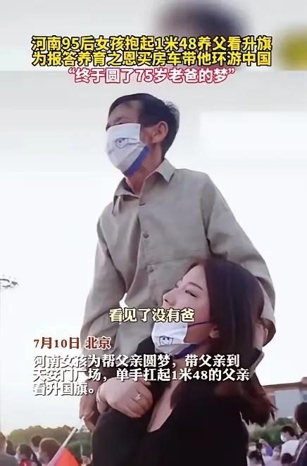 1997年,河南一个50岁光棍,捡回1名女婴。不料,送她读书后,她竟怒问:“穷到捡破烂,为什么还捡我回来?”没想到,后来,她却用自己的双臂,把养父高高举起。 这话像刀子一样,扎进老张心里。他张了张嘴,一个字也吐不出来,只能默默转过身,继续整理那堆捡回来的塑料瓶。是啊,为什么?他自己也说不清。 那年冬天在路边草窠里看见那个小被褥卷,里面一张小脸冻得发紫,哭声都弱了。他一个吃了上顿没下顿的老光棍,靠捡破烂、干零工糊口,自己活着都勉强,怎么就鬼使神差地把她抱回了家? 街坊邻居都说他傻,自己都养不活,还弄个“拖油瓶”。老张不听,他给孩子取名张白鸽,希望她将来能飞出去。养孩子有多难?只有他自己知道。买不起奶粉,就用米汤一点点喂。 白天把她捆在背上走街串巷收破烂,晚上在昏暗的灯下,学着给她缝补破旧的衣服。日子是真苦,一分钱掰成两半花,但看着小丫头一天天长大,会笑了,会喊“爸”了,他觉得这辈子没这么充实过。 白鸽渐渐大了,要上学。学费、书本费,对这个家来说是天文数字。老张没吭声,只是起得更早,回得更晚。别人不愿干的脏活累活,他抢着干。 废品站的价格他门儿清,为了多卖两毛钱,他能蹬着三轮车多跑好几里地。他把所有皱巴巴的零钱都攒起来,用布包好,那是白鸽的学费。他不懂什么大道理,就认一个死理:咱家白鸽,不能当睁眼瞎,得读书。 可学校的日子,对白鸽来说是另一种煎熬。孩子们笑她衣服破旧,笑她身上总有洗不掉的废旧物气味,笑她有个“捡破烂的爹”。同学的嘲讽,像针一样刺伤着她脆弱的自尊心。 她开始怨恨这个家,怨恨这个一贫如洗的环境。那次质问,是她所有委屈和愤怒的总爆发。她看不见父亲深夜里疲惫的腰,看不见他手上洗不净的污垢和伤口,她只看见自己的贫穷和难堪。 老张呢?他没解释,也没发火。他还是那样,沉默地、用尽全力托举着女儿的人生。直到白鸽上了中学,有一次放学早,她鬼使神差地走到了父亲常去的废品收购站。隔着一段距离,她看见父亲正把一大捆沉重的纸壳往高高的秤台上搬。 他咬着牙,脖颈上青筋凸起,腿脚因为常年劳累有些颤,但还是一步步挪了上去。秤台那么高,他那么瘦小。就在那一瞬间,所有的怨恨土崩瓦解,泪水模糊了视线。她突然全明白了,明白自己每一次学费、每一本新书、每一餐饭食,都是从这些废品里一分一分“捡”出来的,是用父亲佝偻的脊背扛回来的。 从那天起,白鸽变了。她再也不抱怨,学习成了她唯一的武器。她知道,只有自己“飞”出去,才是对父亲最好的报答。她成了学校最用功的学生,后来一路考上了大学。接到录取通知书那天,老张哭了,这个扛着生活重压从未弯过腰的汉子,哭得像个孩子。 再后来,有了那张著名的照片——事业有成的白鸽,在某个颁奖典礼上,当着所有人的面,用力地把瘦小的养父稳稳地举了起来,就像小时候父亲无数次举起她那样。这个举动,胜过千言万语。她举起的不只是一个老人,是一份如山恩情,是一种命运的抗争与逆转,是向全世界宣告:看,这就是我的父亲,他或许一无所有,却给了我整个世界。 白鸽的故事,击穿了一个尖锐的社会命题:贫穷,是否就丧失了爱与抚养的资格?老张用他的一生给出了回答。爱,从来不是富人的专利。最深沉的爱,往往诞生于最困窘的土壤。它不华丽,没有甜言蜜语,只是日复一日的拼命,是沉默的自我牺牲,是把对方的人生,扛在自己已然不堪重负的肩上,往前走。 这个故事不是简单的“养女报恩”的道德叙事。它更深刻地展现了爱如何在误解与伤害中坚韧生长。白鸽曾经的怨恨是真实的,那是身处贫困中一个孩子的本能痛苦;她后来的感恩与反哺,则是穿透表象、理解了爱的本质后的真正成熟。他们父女的关系,经历了“养育—误解—理解—升华”的完整淬炼,因而格外厚重有力。 老张从来没想过“为什么捡她回来”,那是源自生命本能的不忍与善意。而白鸽用她的成长与成就,最终回答了那个问题:你捡我回来,给了我生命;而我,要让你这耗尽心血的生命,拥有最骄傲的结局。 各位读者你们怎么看?欢迎在评论区讨论。