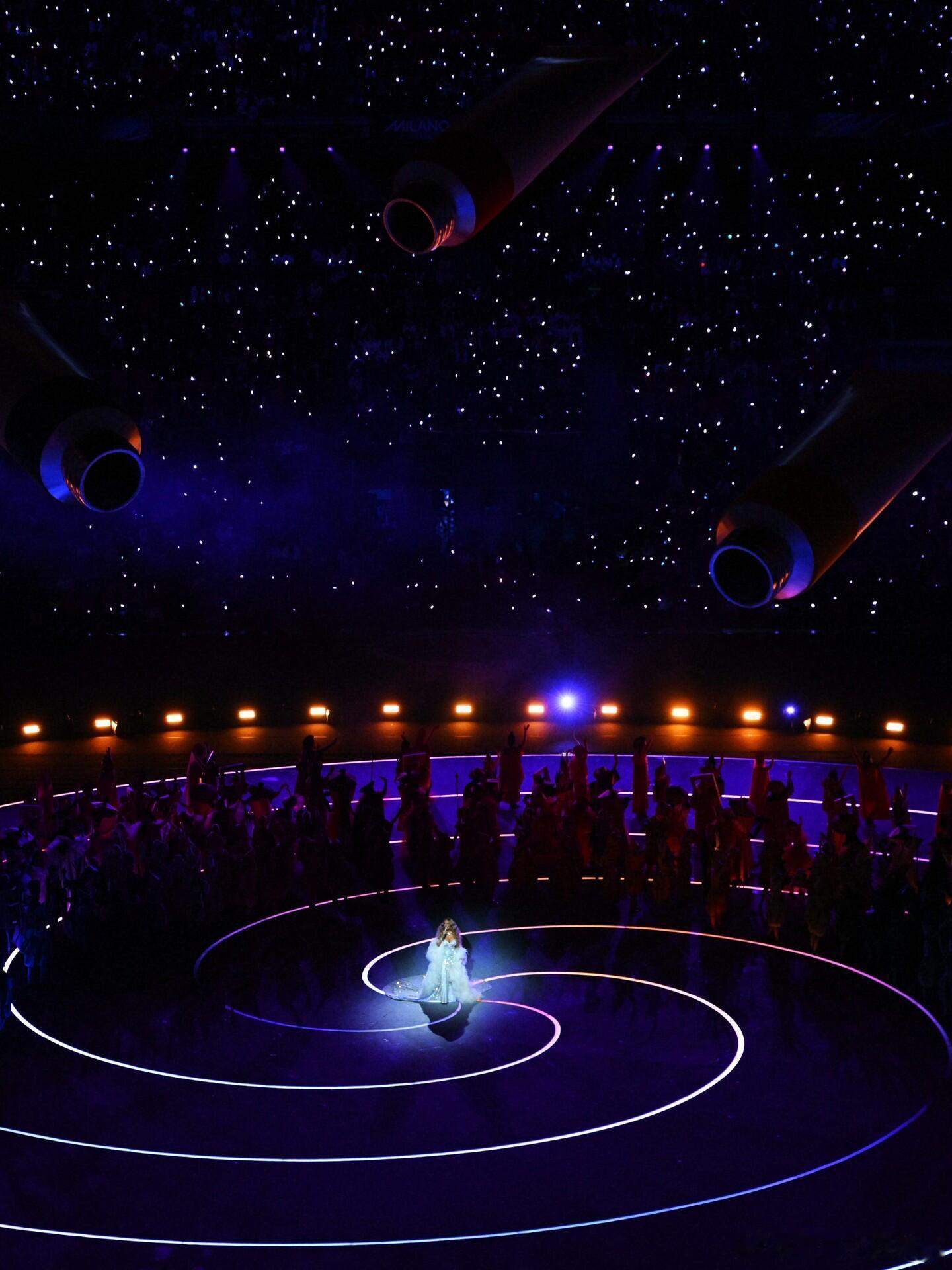 玛丽亚凯莉现身冬奥会开幕式演唱🇮🇹经典名曲《蓝色绘画》!身穿的羽毛礼服裙来自🇮🇹品牌RobertoCavalli特别定制,上面绣有306克拉施华洛世奇水晶,耗时700个工时完成!冬奥会时尚图鉴冬奥观赛团
