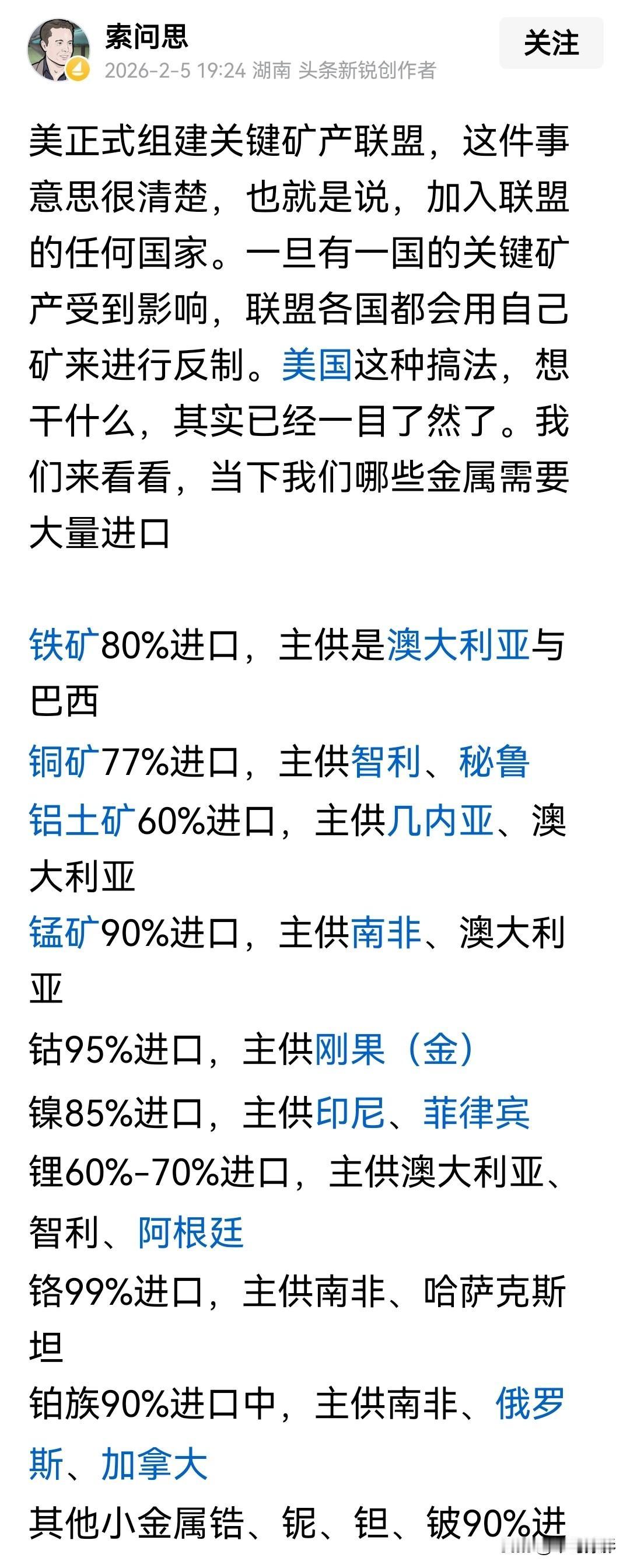 美国邀请55千国家组建“关键矿产联盟”,司马昭之心路人皆知! 联盟任一国家关键矿产受到影响,联盟国家将共同反制。