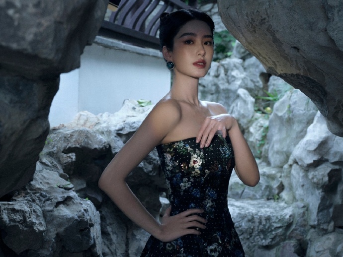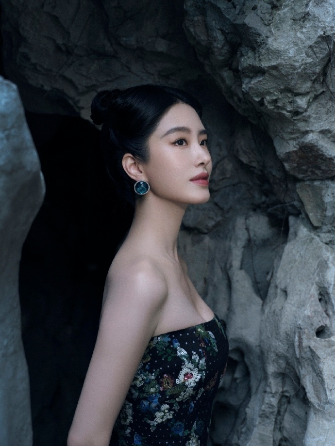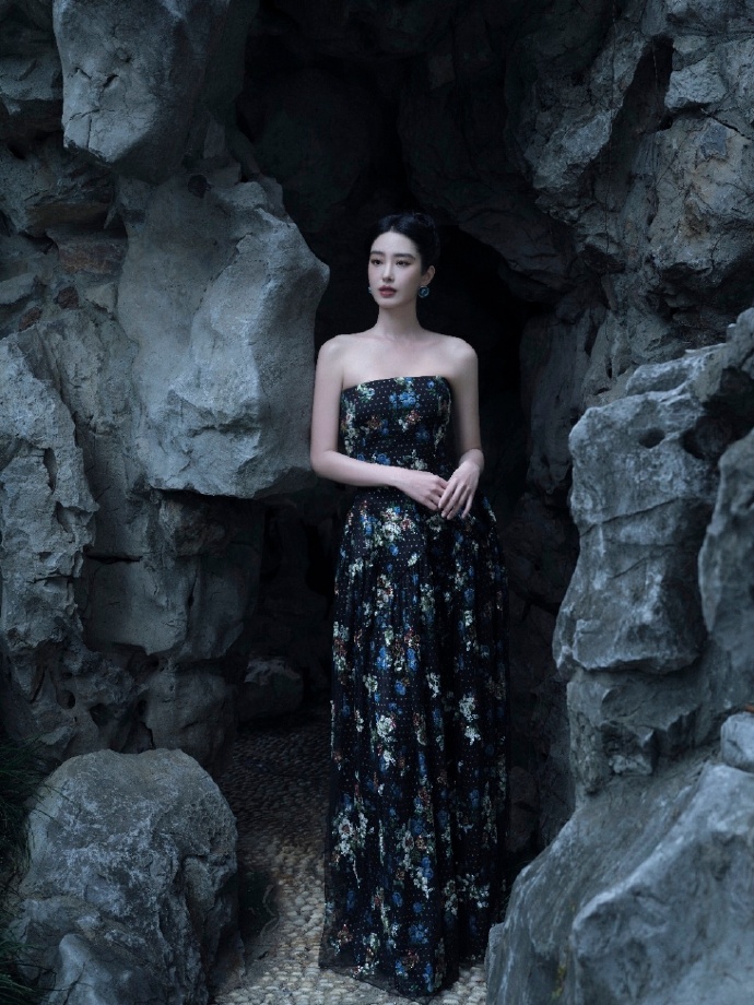 秦岚绿色长裙写真,清新色调衬得她优雅又灵动