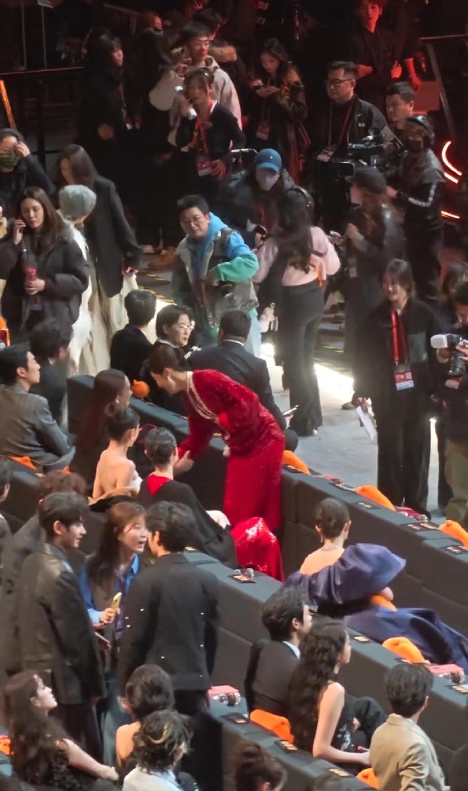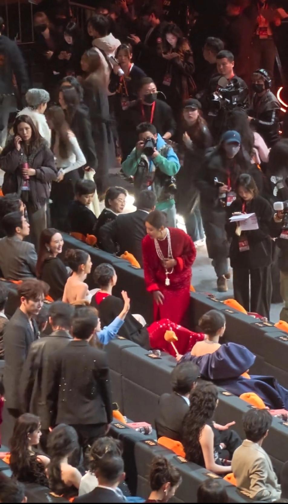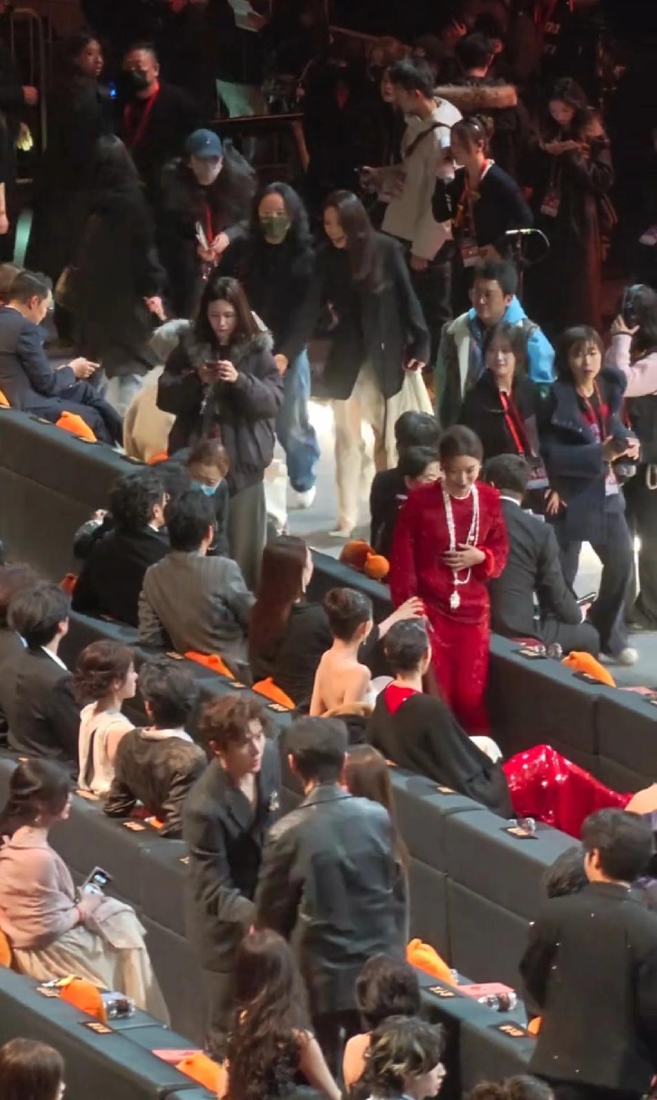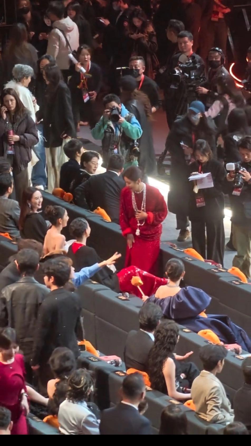 辛芷蕾这好人缘,就走到自己位子这一会功夫,童瑶,佟丽娅,倪妮,杨幂全部跟她热情互动,童瑶在辛芷蕾经过时,主动拉着辛芷蕾的手臂跟她打招呼聊天,佟丽娅也跟她乐呵呵的打招呼,倪妮更是拿腿挡住辛芷蕾不让她过去,各种跟她闹,旁边的杨幂还一直敲着小锤提醒辛芷蕾赶快坐过来,辛芷蕾还没坐好,杨幂就迫不及待的跟她聊天,娱乐圈的女明星或高冷,或逢场作戏,但是感觉大家对辛芷蕾是发自内心的喜欢,尤其是倪妮,能这么跟辛芷蕾闹腾,必定是关系很亲近了,也是,像辛芷蕾这么爽快大气的性格,能不招人喜欢吗?辛芷蕾 倪妮 佟丽娅
