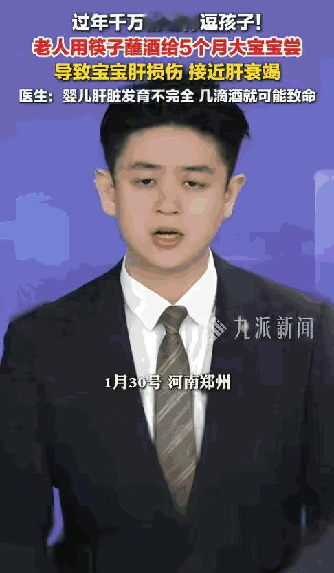 “悲剧还是发生了!”河南,一老人在家庭聚会中,用筷子沾酒给5个月大的宝宝尝味,虽然量不是很多,但没多久,宝宝就嗜睡不愿动,并且皮肤还出现了黄疸,送医检查后才得知孩子肝损伤,甚至接近肝衰竭!网友:糊涂啊! 家里聚餐一大家子人围在圆桌旁,菜香混着酒香,气氛热得像要冒火。5个月大的宝宝被妈妈抱在怀里,软乎乎的小身子裹着红棉袄,眼睛乌溜溜地转,惹得一桌子人都凑过来逗。 坐在主位的爷爷喝得脸颊通红,看着怀里的重孙,手痒得厉害。他端起自己的白酒杯,用筷子头轻轻蘸了一点,就往宝宝嘴边送。孩子妈妈当时就慌了,伸手想拦,嘴里念叨着“爸,不行,孩子太小了”,可爷爷手快,笑着说“怕啥,就沾一点,尝尝味儿,以后酒量好”,话音刚落,那点带着酒气的筷子头就碰到了宝宝的嘴唇。 宝宝被那股辛辣味刺激得皱起眉头,小身子抖了一下,没哭,只是砸吧了两下嘴,很快就蔫蔫地靠在妈妈怀里。一开始大家都没当回事,只当是孩子被逗得有点累,可没过半小时,宝宝就开始不对劲了——眼皮越来越沉,怎么逗都睁不开,小胳膊小腿也软得像没骨头,连平时最爱吃的奶都不肯碰。 更吓人的是,没过多久,宝宝的小脸和眼白就开始发黄,像蒙了一层淡淡的黄纸,呼吸也变得又轻又急。妈妈吓得魂都飞了,抱着孩子就往医院冲,一路上孩子都没怎么动弹,只有胸口微弱的起伏。 到了急诊室,医生一看孩子的脸色,再一问情况,当场就皱紧了眉头。抽血化验的结果出来后,医生的话像一盆冰水浇在全家人头上:孩子的肝功能指标严重超标,肝细胞已经出现大面积损伤,再晚来一步,就可能发展成急性肝衰竭,随时有生命危险。 更让人无奈的是,这种“逗娃陋习”在很多地方还很常见。除了沾酒,还有喂蜂蜜、嚼碎食物喂孩子、强行逗孩子大笑大哭等,这些行为背后,藏着的是对科学育儿知识的匮乏,以及对孩子健康的漠视。长辈们往往沉浸在“我是为孩子好”的自我感动里,却忽略了孩子脆弱的身体根本承受不起这些“好意”。 作为父母,遇到这种情况,真的不能再碍于情面妥协了。该拒绝的时候就要果断拒绝,别让所谓的“长辈面子”,变成孩子一辈子的伤痛。也希望更多长辈能明白,爱孩子不是用老一套的方式去“逗”,而是尊重科学,保护孩子的健康。 各位读者你们怎么看?欢迎在评论区讨论。
