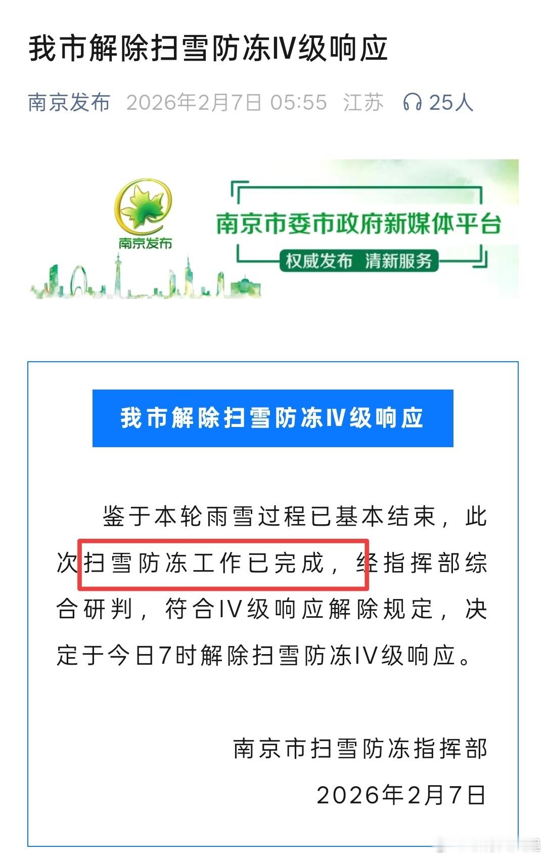 上一次下雪南京路政被喷的很惨,这次可算上心了,扫雪防冻工作完成后,不但发了公众号还群发了短信